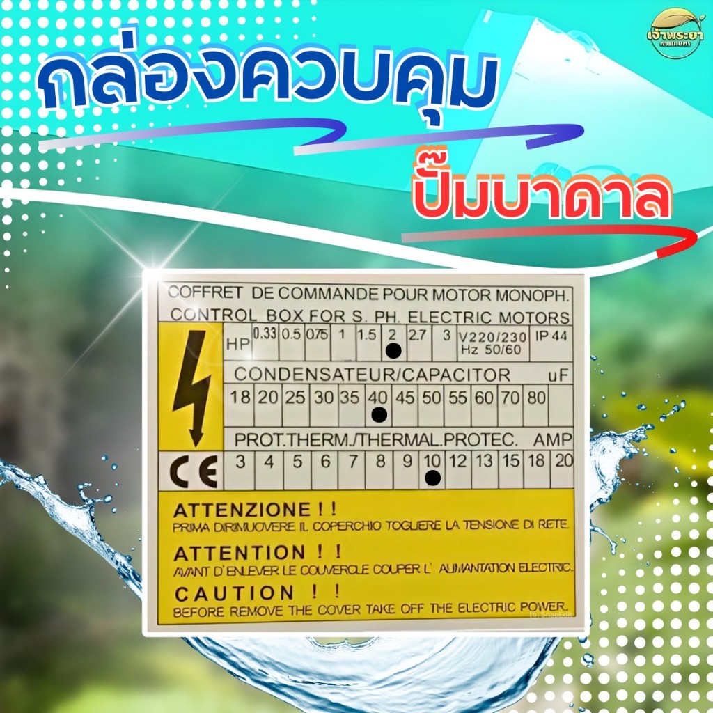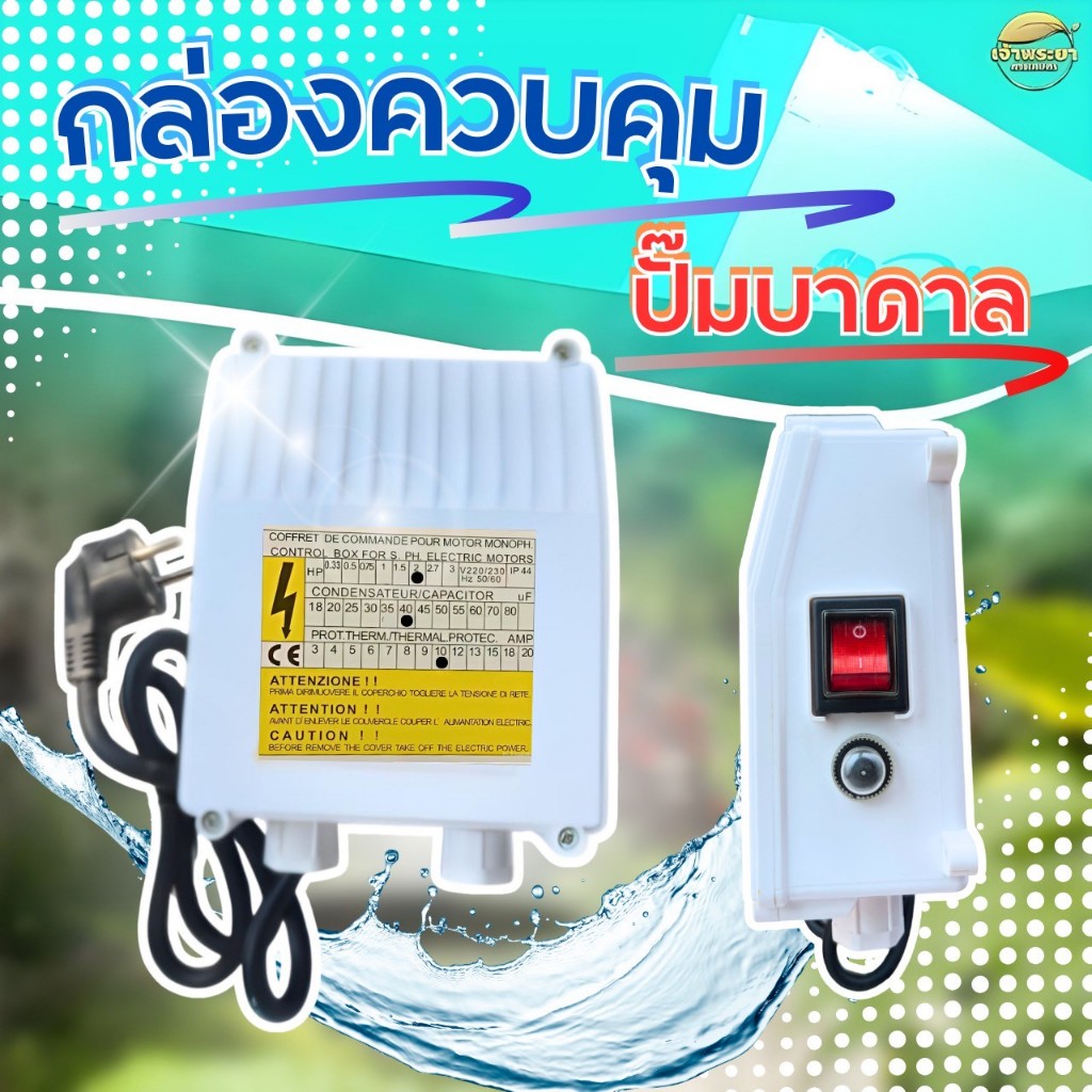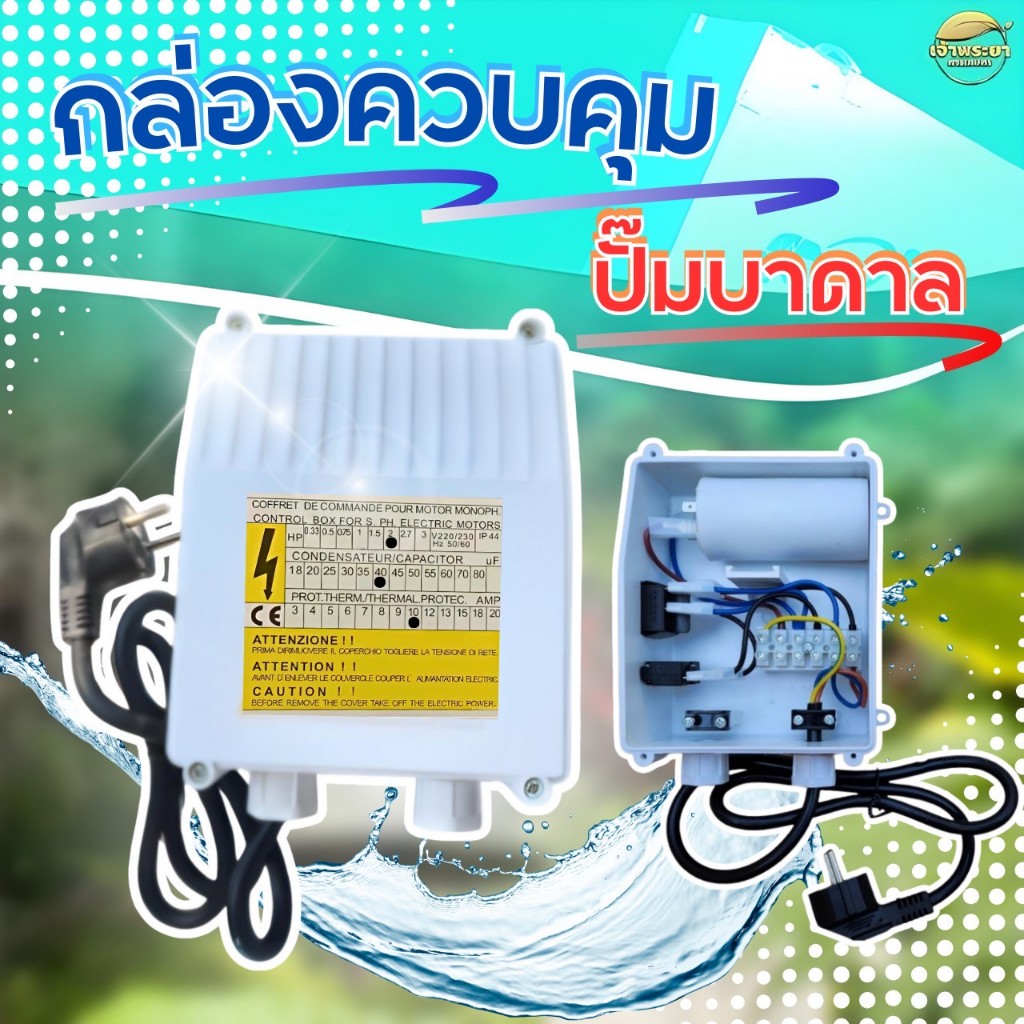 กล่องควบคุมปั๊มบาดาล 2 HP 40UF สำหรับปั๊มซัมเมิสพร้อมคาปาซิเตอร์ มีสวิตเปิดปิด