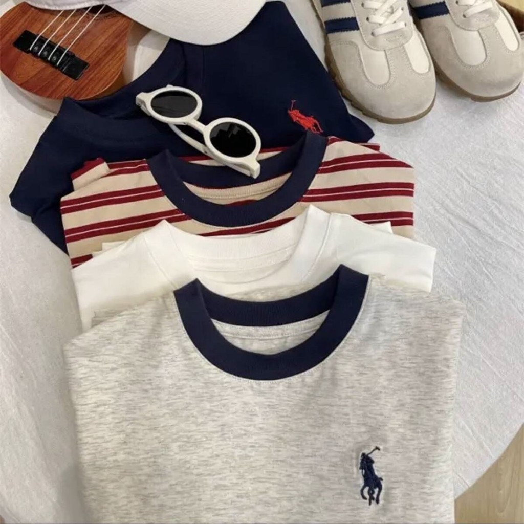 เสื้อยืดแขนสั้นเด็ก 2025 สไตล์ฤดูร้อนเด็กชายลายเย็บปักถักร้อยแขนสั้นเด็กชายเด็กทารกแฟชั่น Ice Sil