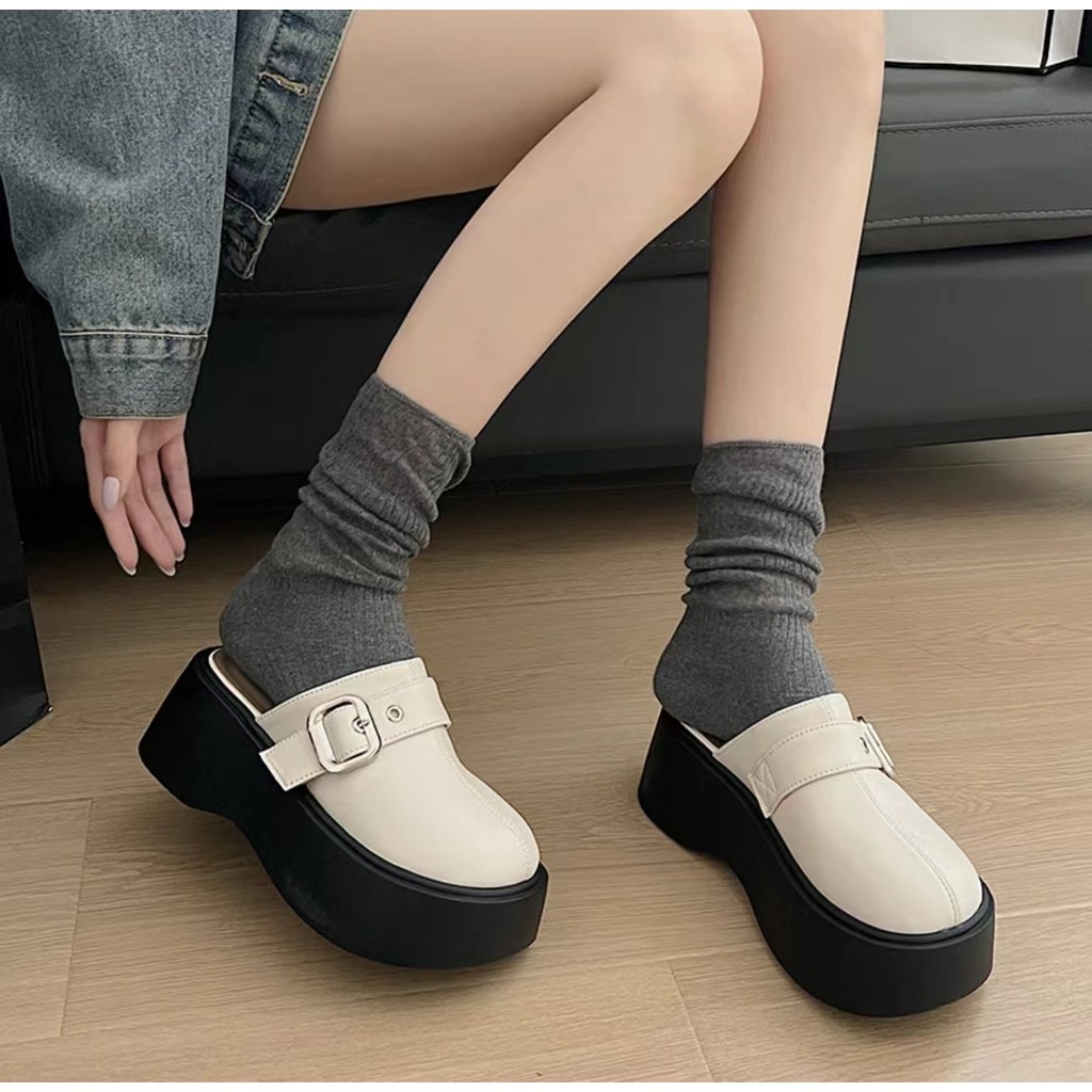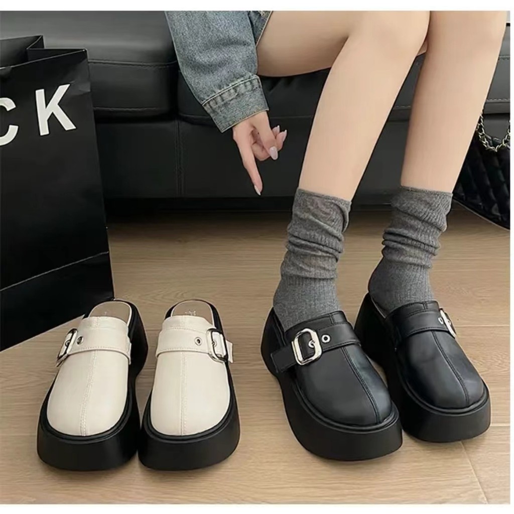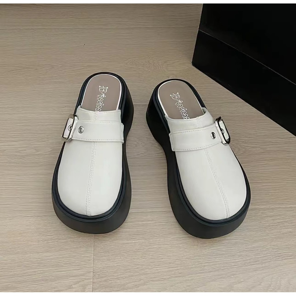 One for all พร้อมส่งจากไทย TX602 รองเท้าแตะหัวโตเปิดส้น พื้นหนา 2.5นิ้ว หนังนุ่ม แต่งด้วยโลหะเข็มขัดเงิน เหมาะสำหรับผู้หญิง