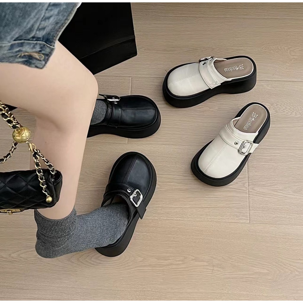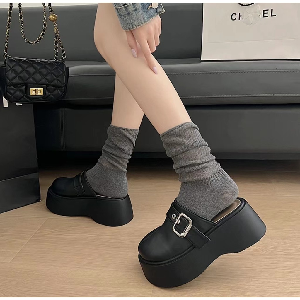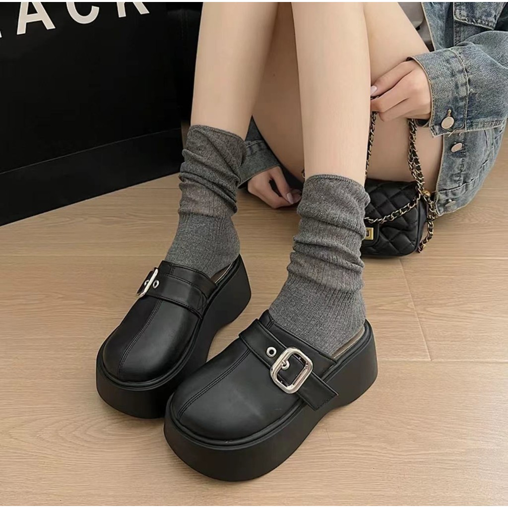 One for all พร้อมส่งจากไทย TX602 รองเท้าแตะหัวโตเปิดส้น พื้นหนา 2.5นิ้ว หนังนุ่ม แต่งด้วยโลหะเข็มขัดเงิน เหมาะสำหรับผู้หญิง