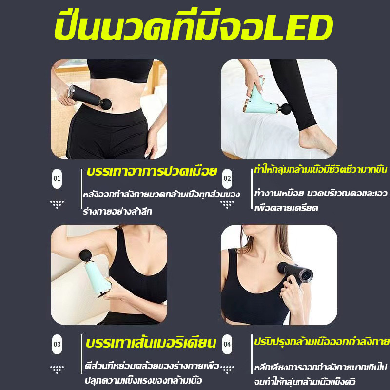 Roxart ปืนนวด Massage Gun ปืนนวดไฟฟ้า นวดกล้ามเนื้อที่นวดไฟฟ้า ปืนนว 4 หัว ปรับได้ 32 ระดับ