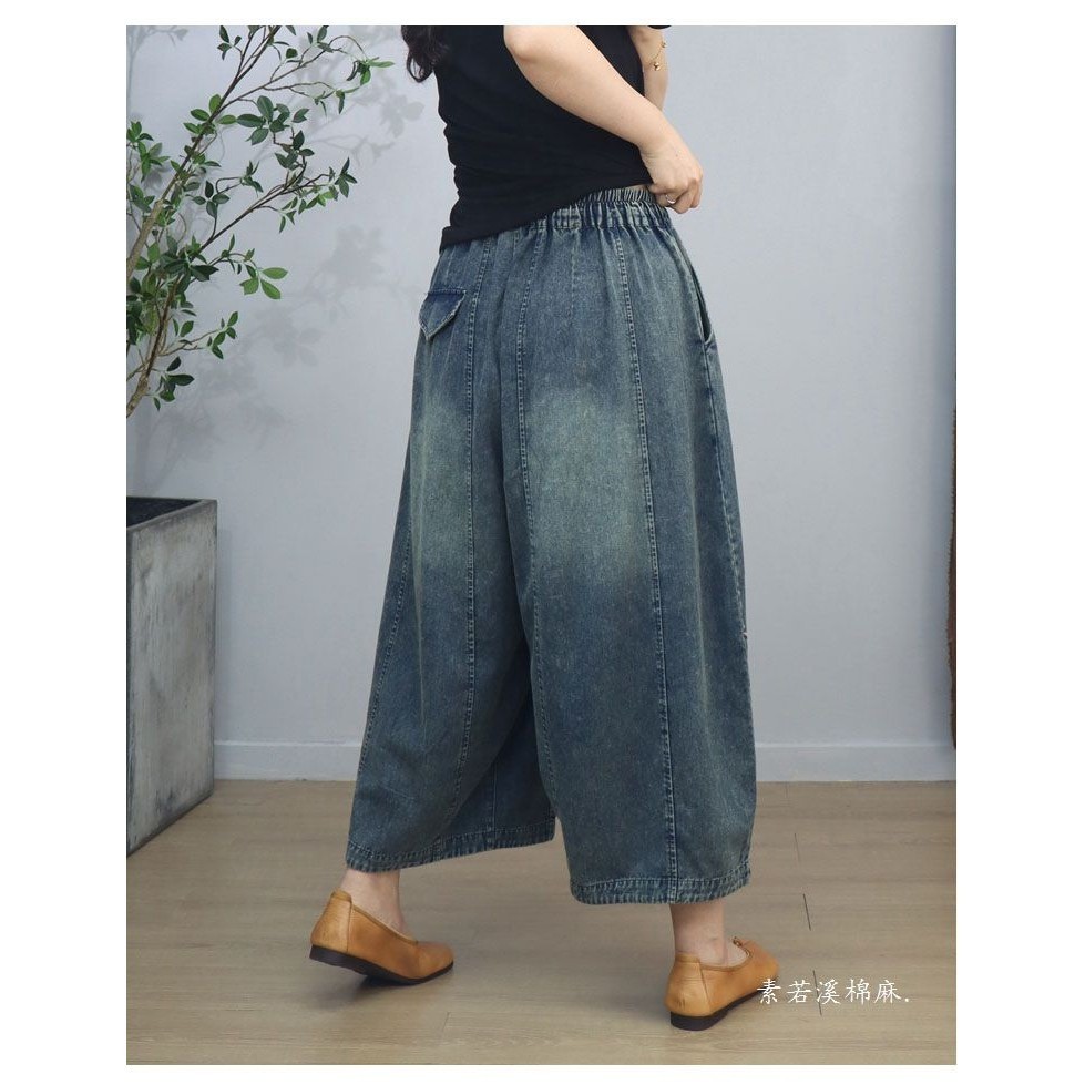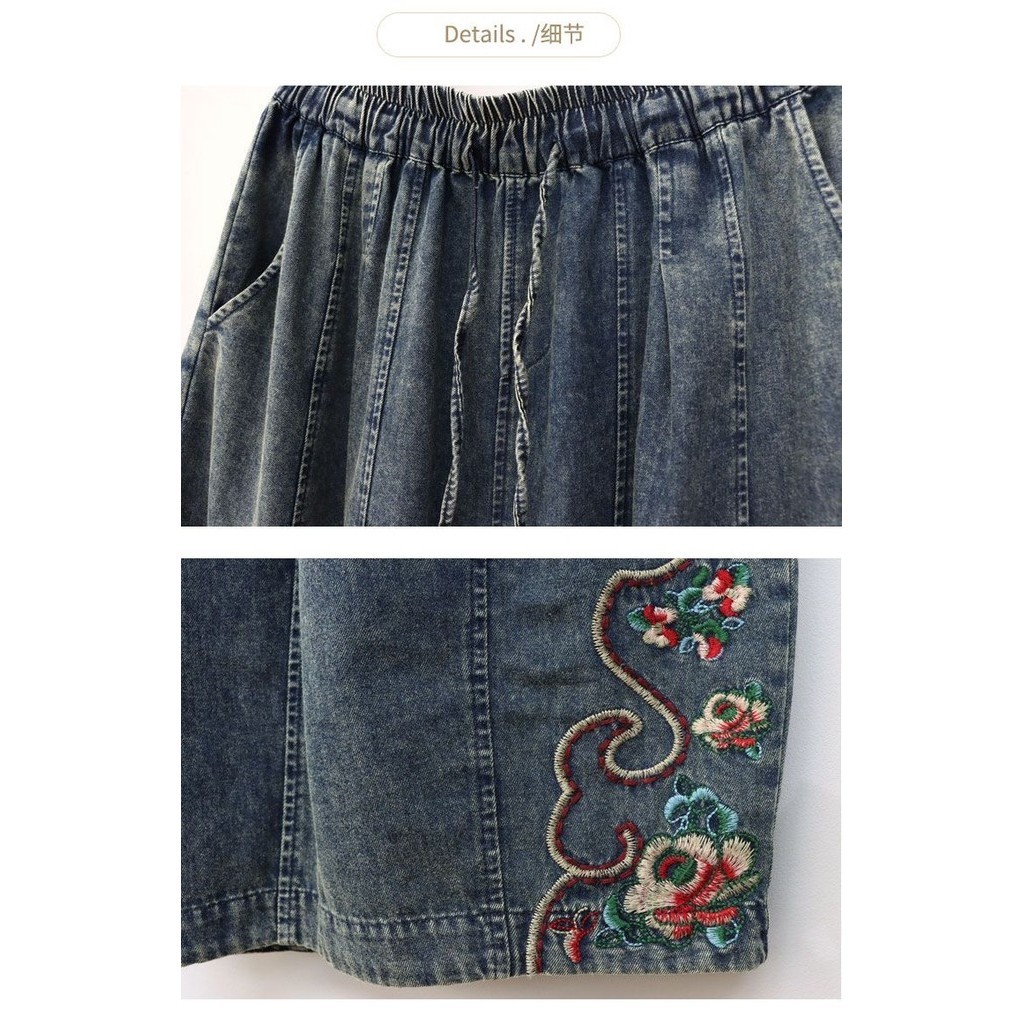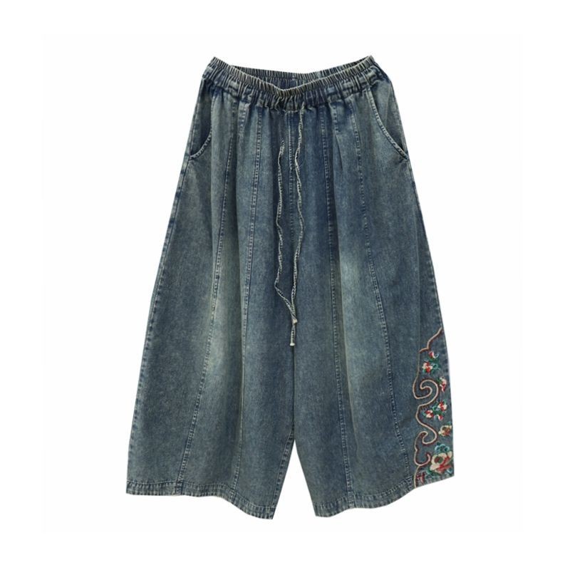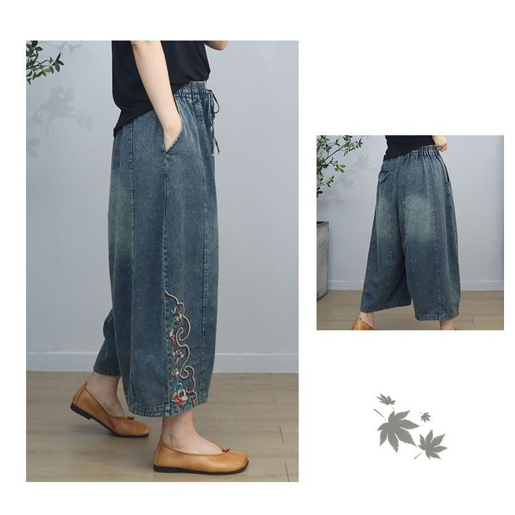 กางเกงยีนส์ผู้หญิง 2024 ฤดูใบไม้ผลิและฤดูร้อนเกาหลีรุ่นยางยืดเอวสูงหลวมและอเนกประสงค์ปัก การทําตัวให้ผอม กางเกงขากว้างตัด