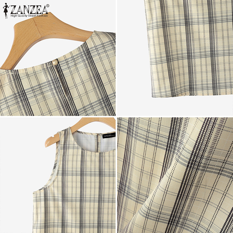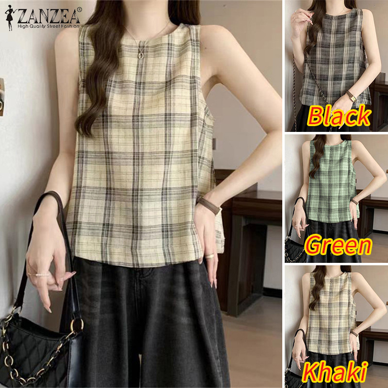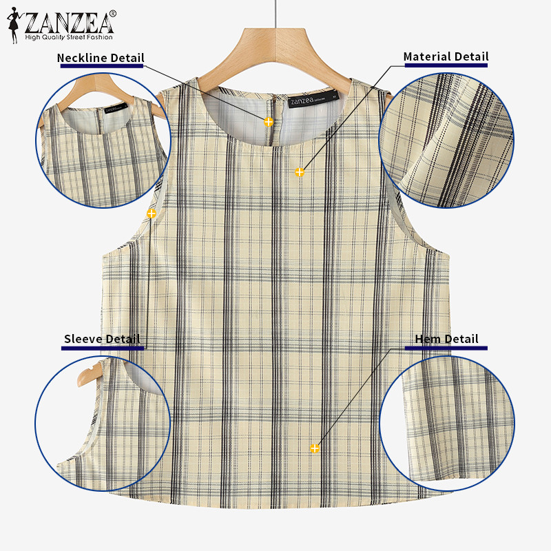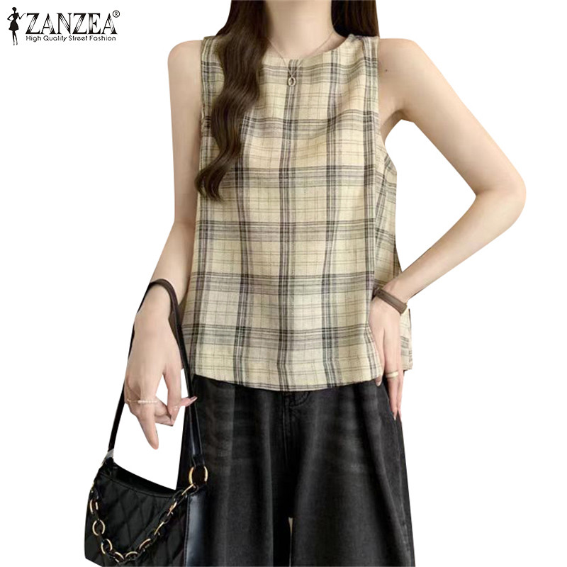 Zanzea เสื้อกล้ามลายสก๊อตแขนกุดคอกลมสไตล์เกาหลีสําหรับผู้หญิง