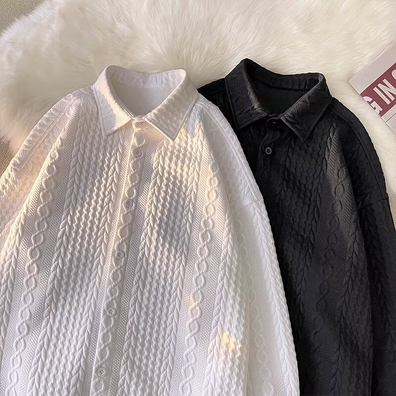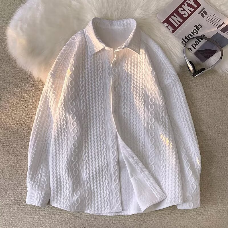 M-2XL เสื้อเชิ้ตสีขาวสไตล์เกาหลี ใส่สบาย เรียบง่ายสำหรับผู้ชาย