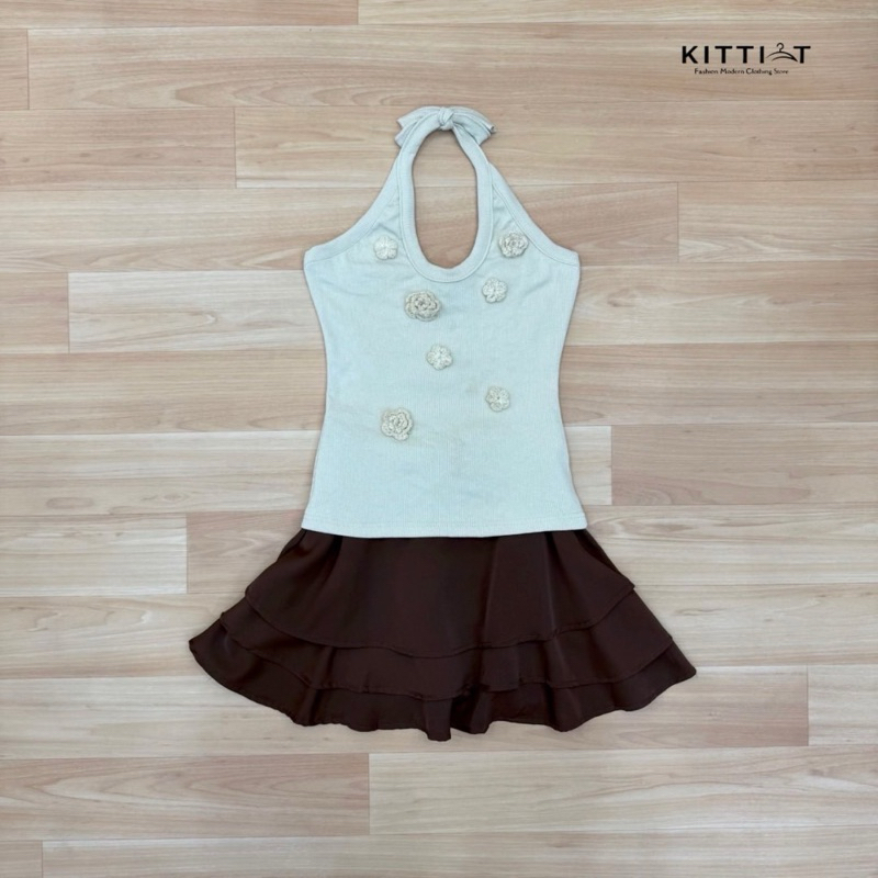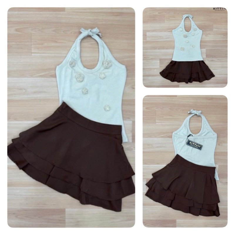 Details : Details ::: งาน Set everyday look ใส่ง่ายแต่แฝงไปด้วยความลงตัว ตัวเสื้อเป็นทรงคล้องคอผ้ายืดใส่สบาย ตกแต่งด้วยดอกไม้ถัก สวยมาก กระโปรงเอวสูง ทรงสวยตกแต่งเป็นชั้น มีซับในกางเกง set น
