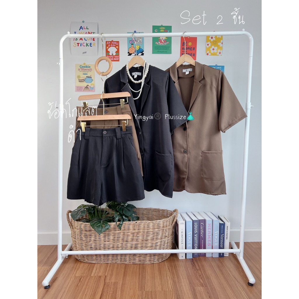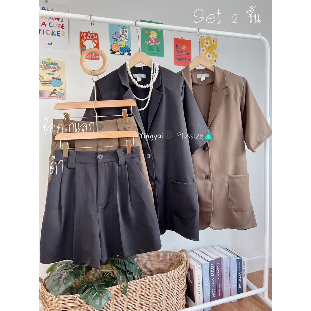 มีกระเป๋าหน้า + กางเกงขาสั้นเอวสูง