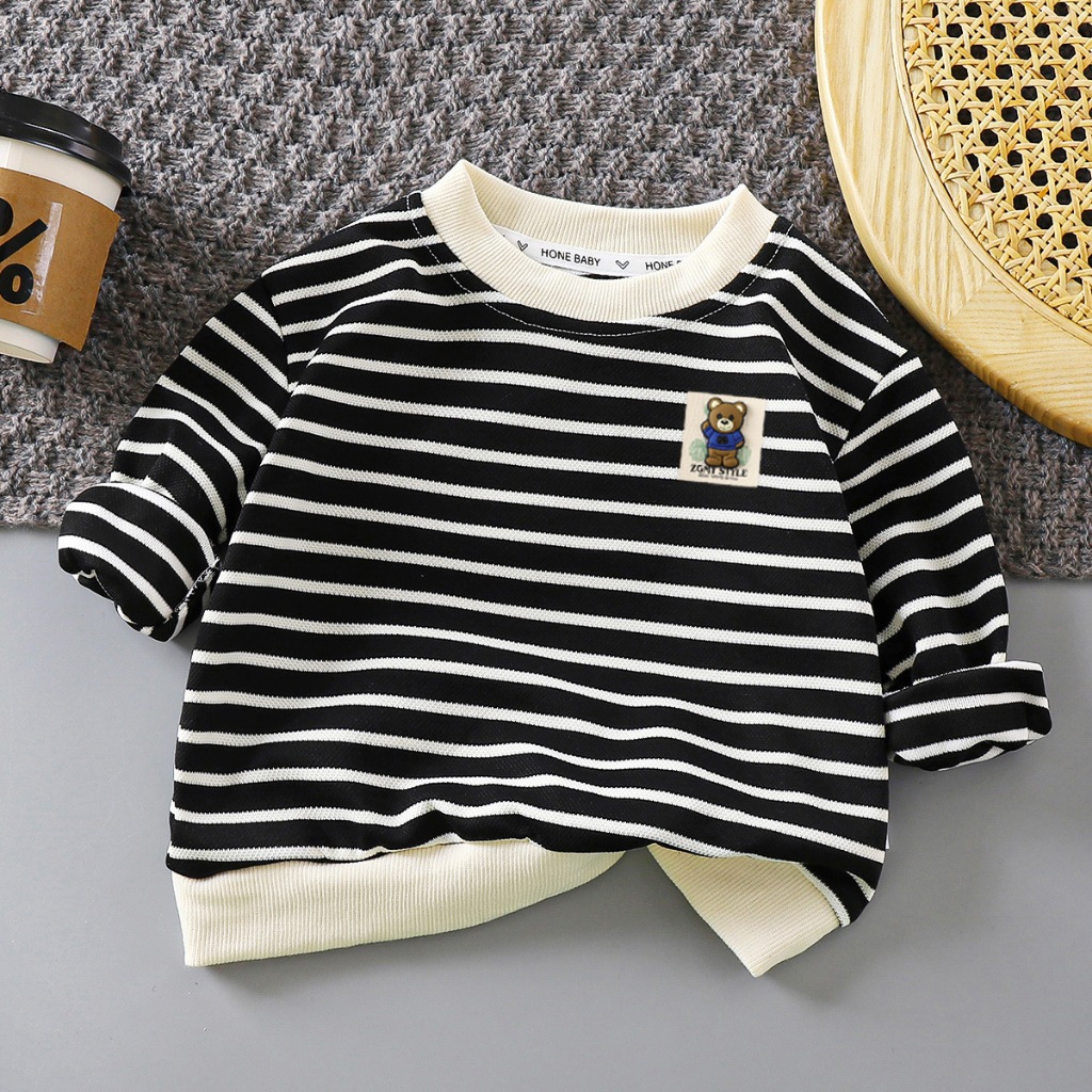 เสื้อดำเด็กผู้ชาย เสื้อแขนยาวเด็ก คอกลม แขนยาว ลายแถมขาวดำ งานสไตล์เกาหลี ใส่สบาย #T20901