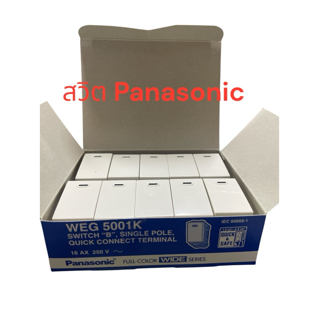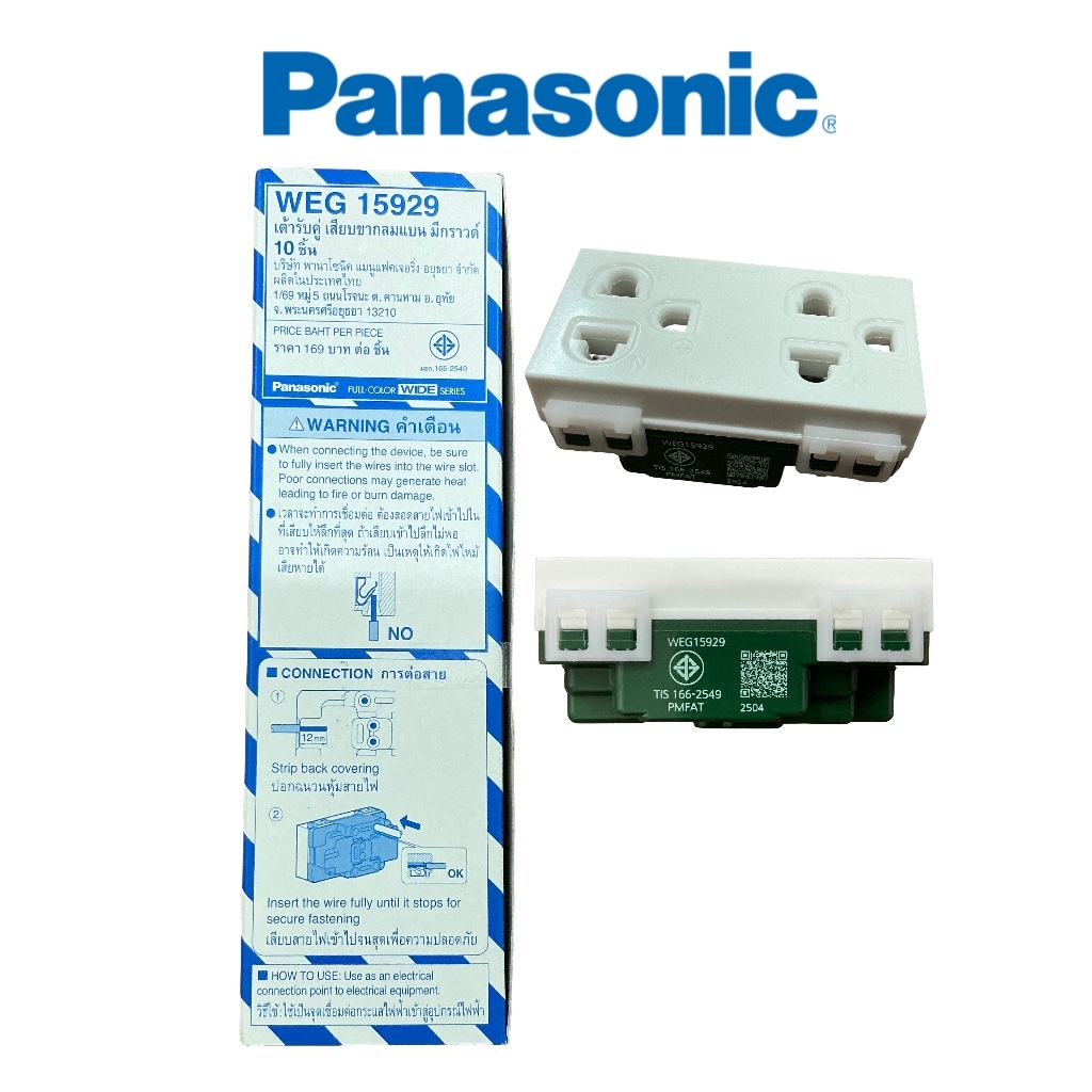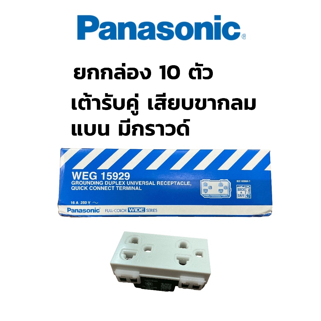 พานาโซนิค ยกกล่อง10ตัว ปลั๊กกราวด์คู่ WEG15929 ปลั๊กกราวเดี่ยวWAG1191k เต้ารับคู่เสียบขากลมแบน panasonic