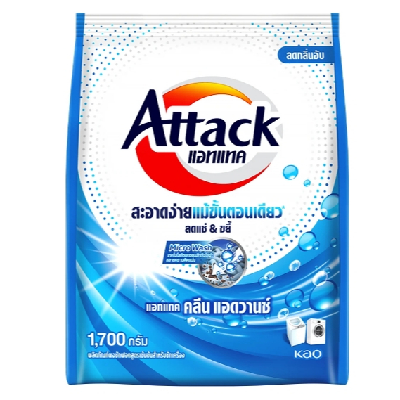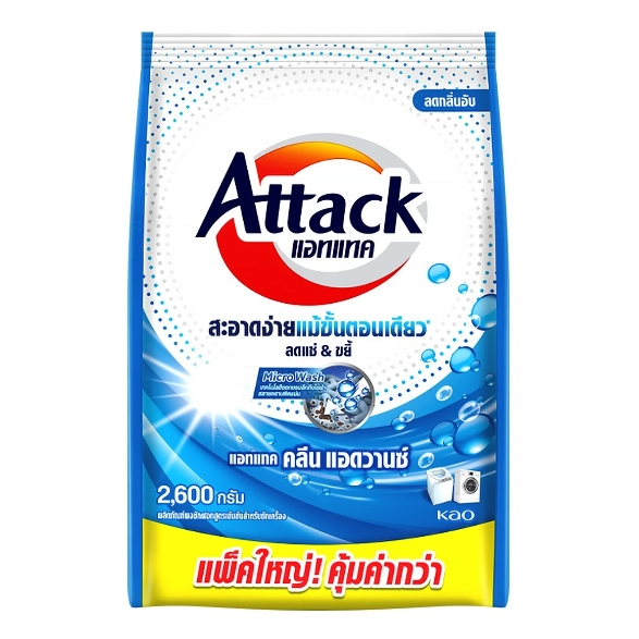 – แอทแทค คลีน แอดวานซ์ ผลิตภัณฑ์ผงซักฟอกสูตรเข้มข้นสำหรับซักเครื่อง