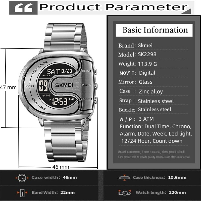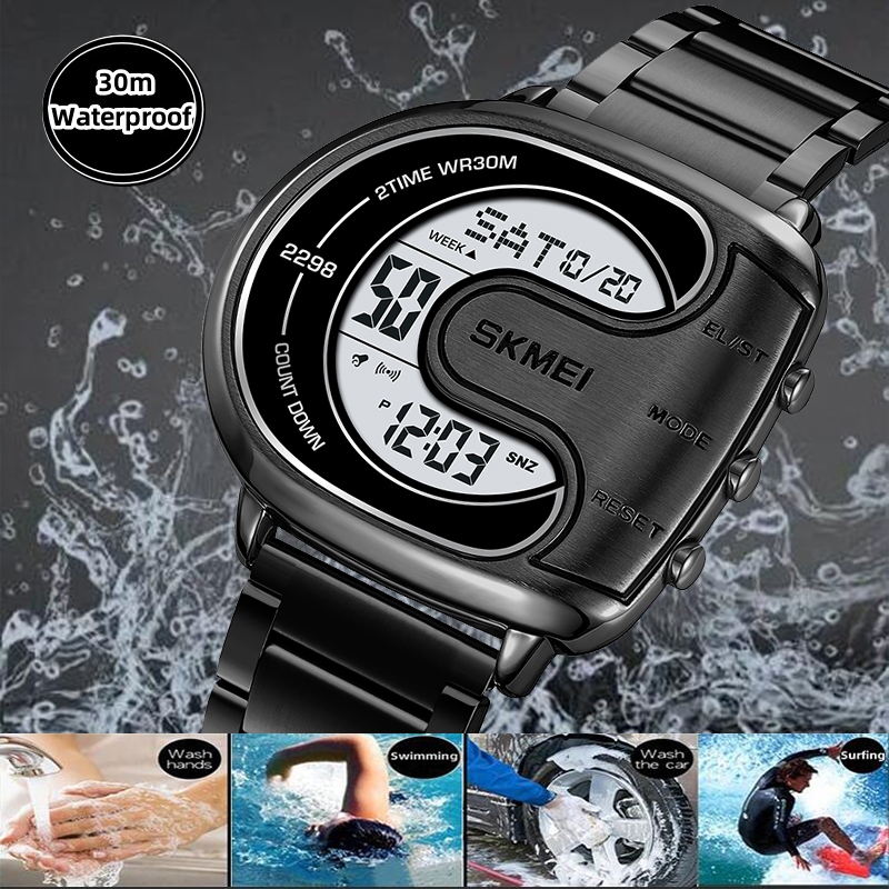 Skmei ผู ้ ชายดิจิตอลนาฬิกากันน ้ ําหรูหราสแตนเลสสาย Led Chronograph นาฬิกาปลุกแฟชั ่ นนับถอยหลังกีฬา Dual Time