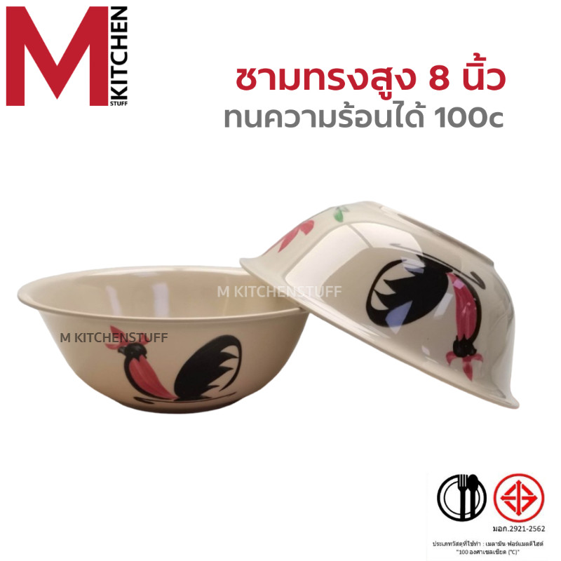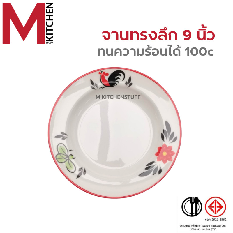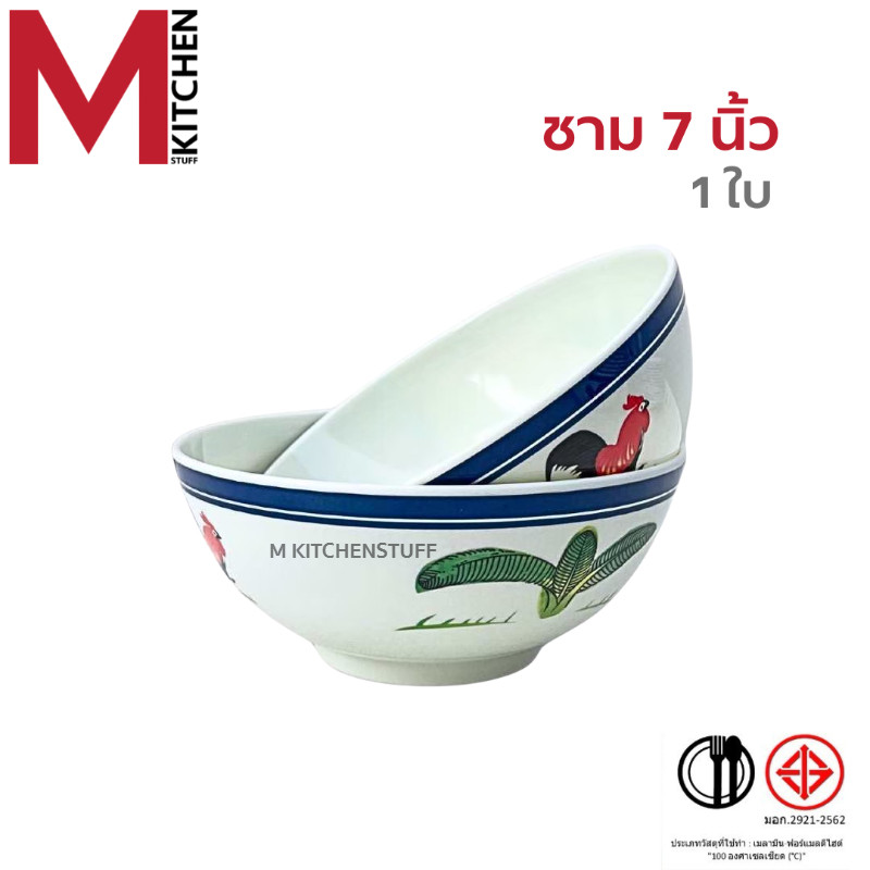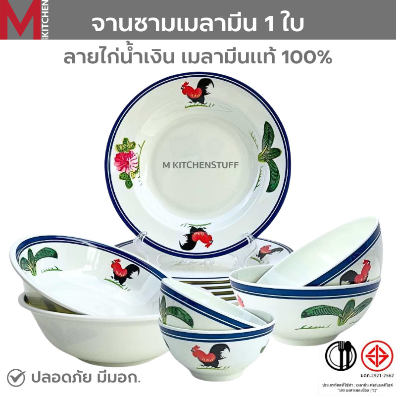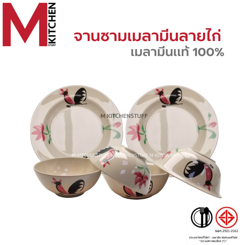 M KITCHEN จาน ชาม ชามเมลามีน ลายไก่ แท้100% จานชาม จานลึก ถ้วย ชามใส่น้ำแกง ชามใส่น้ำซุป (A3)