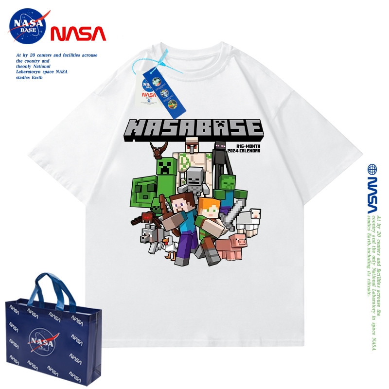 ผ้าฝ้าย < มายคราฟ > & นาซ่า ร่วม-แบรนด์ เสื้อยืดอินเทรนด์: กับ < มายคราฟ >รูปแบบตัวละครสไตล์พิกเซลคลาสสิกจับคู่ < นาซ่าบาสเซ} ข้อความ, ธาตุเน