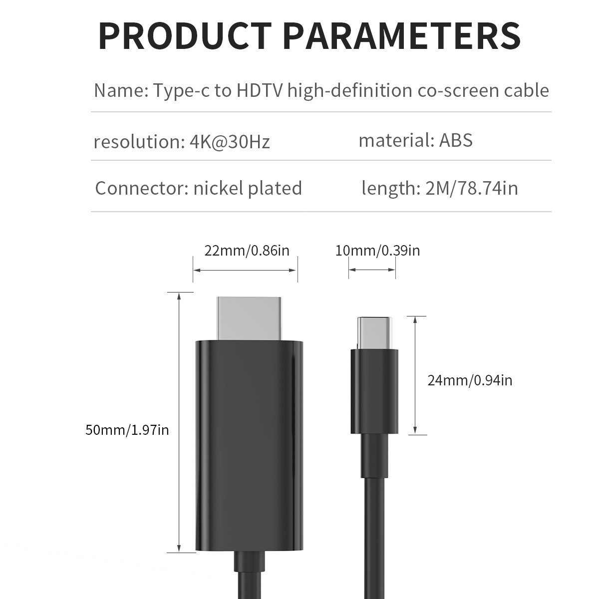 สาย USB C เป็น HDMI 4K30Hz 6.6ft Type-C ตัวแปลงหน้าจอเดียวกันสําหรับ macbook dell hp แล็ปท็อปแท็บเล็ต