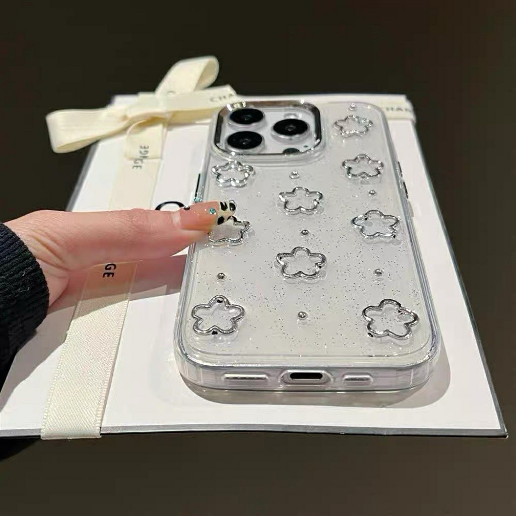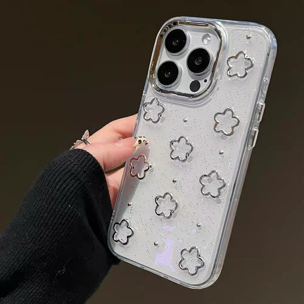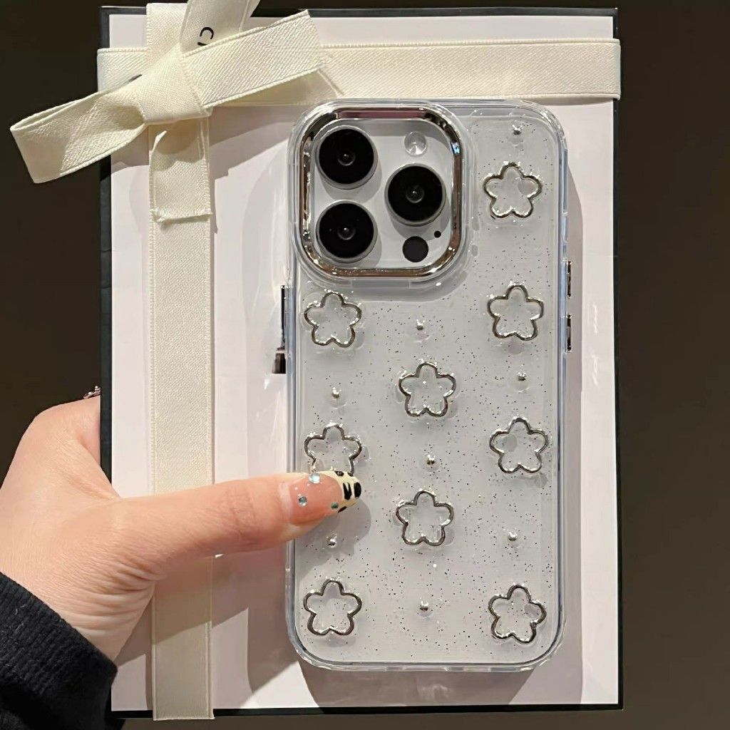 หยิบใส่ตะกร้าเคสลาย ดอกไม้เงิน กากเพชร สำหรับ ไอโฟน16plus งานกล่อง 15 promax 11 promax i12 promax 13 promax 14 promax 16 promax