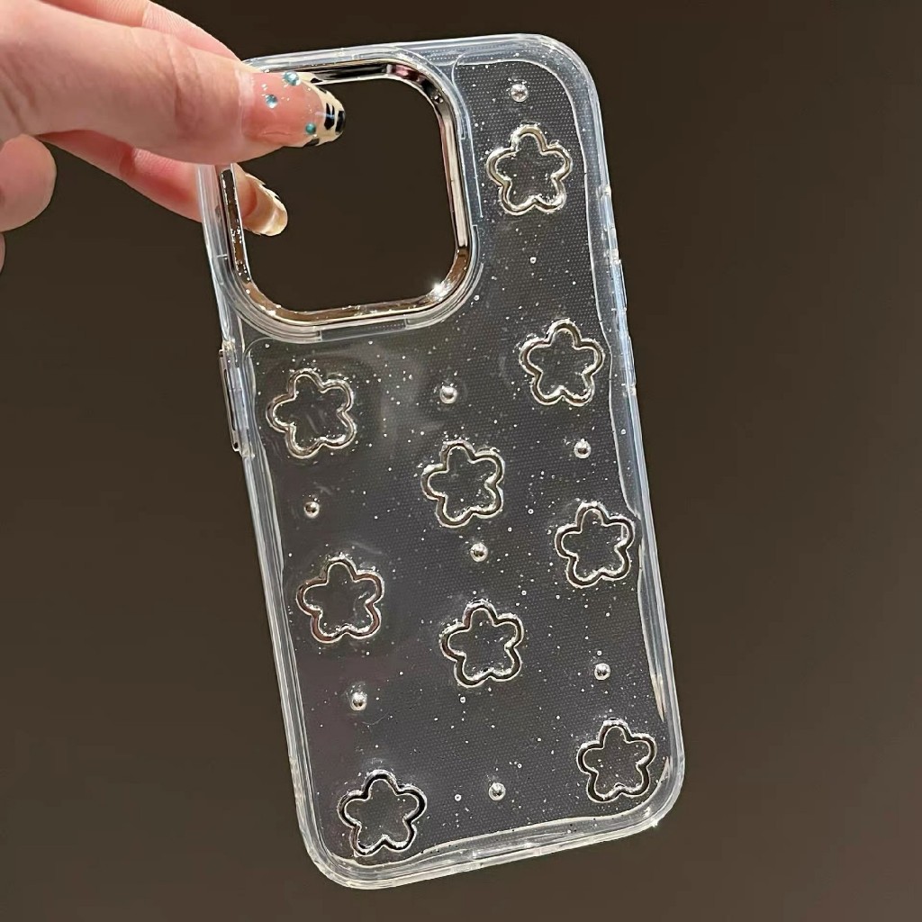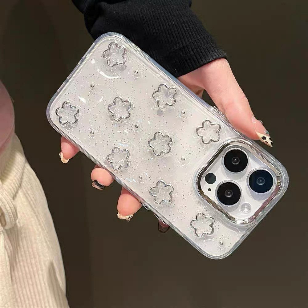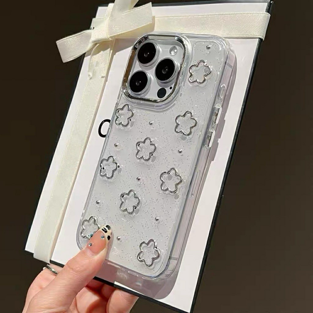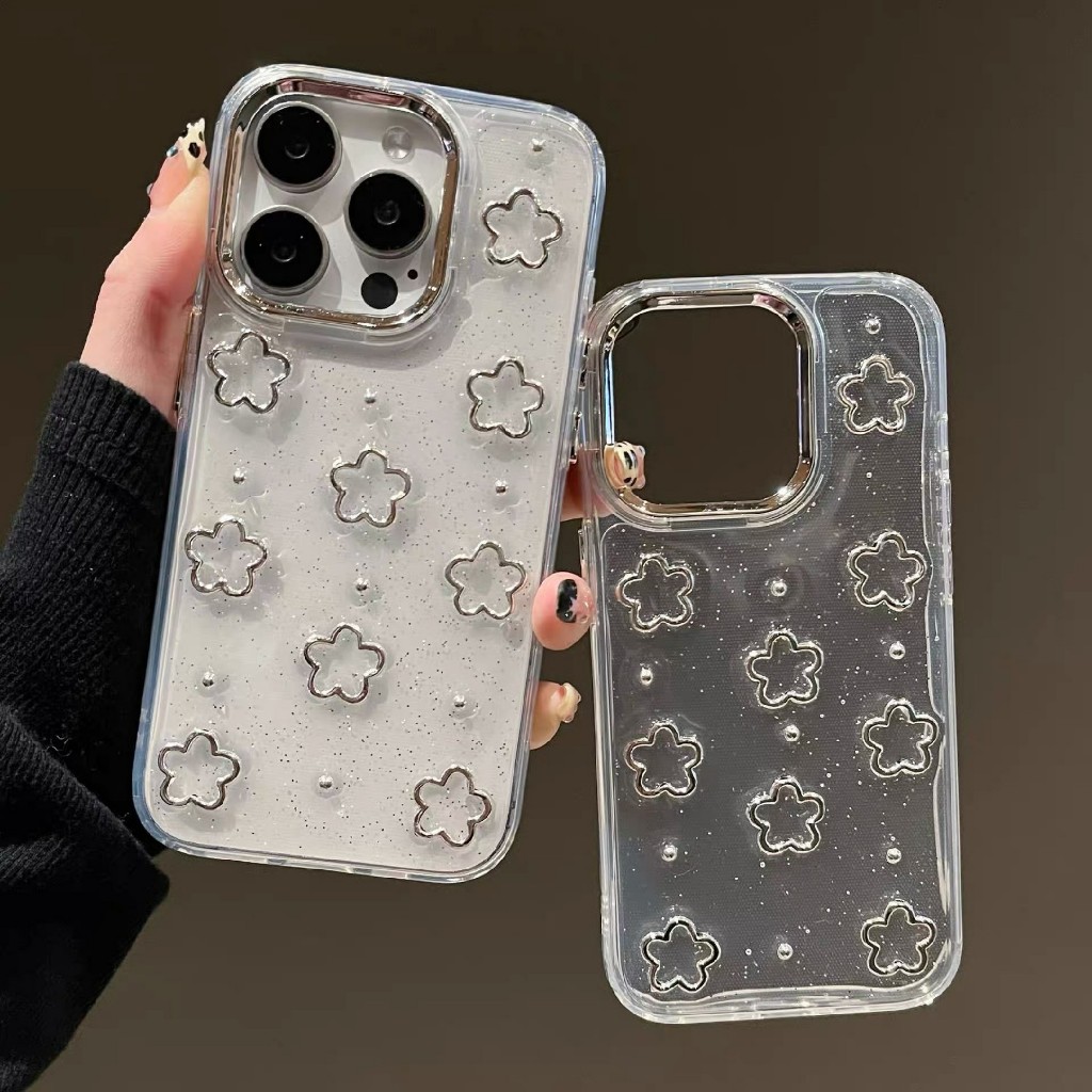 หยิบใส่ตะกร้าเคสลาย ดอกไม้เงิน กากเพชร สำหรับ ไอโฟน16plus งานกล่อง 15 promax 11 promax i12 promax 13 promax 14 promax 16 promax