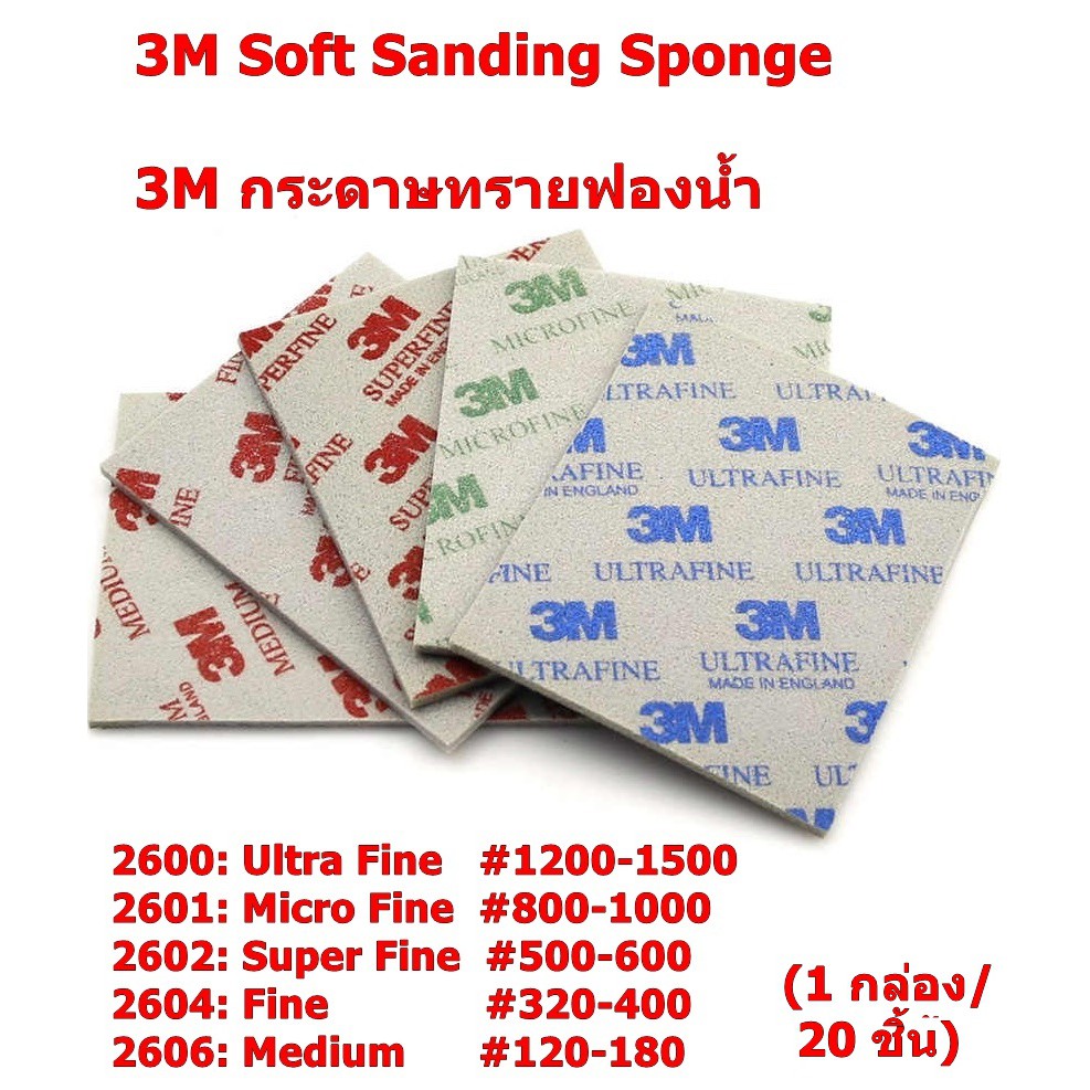 ( 1กล่อง/20 ชิ้น) 3M Soft Sanding Sponge ฟองน้ำกระดาษทราย 2600 2601 2602 2604 2606