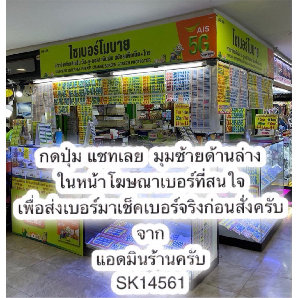 เบอร์ที่ร้านทุกเบอร์คือ Ais เติมเงิน วันทูคอล