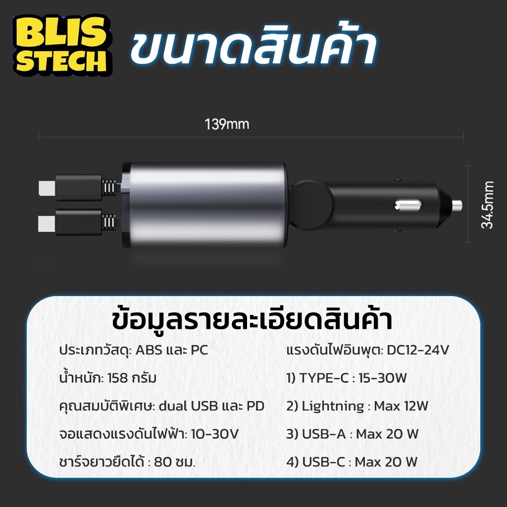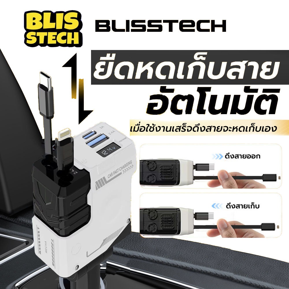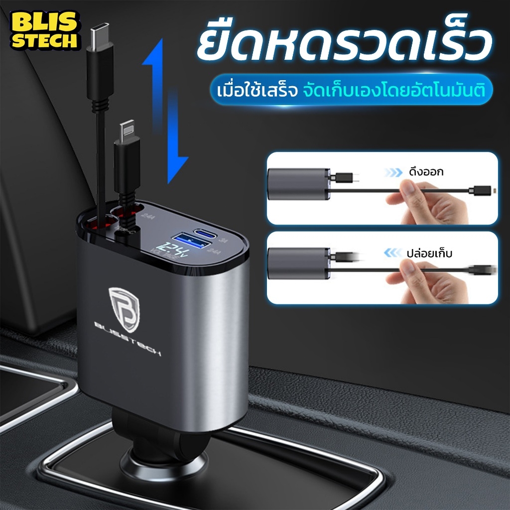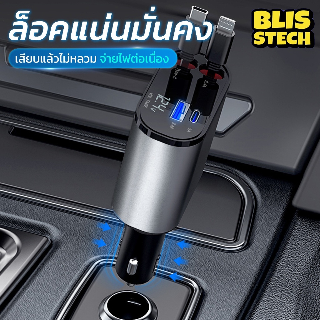 🚗 ที่ชาร์จในรถ หัวชาร์จในรถ สายชาร์จในรถยนต์ fast charging อะแดปเตอร์ชาร์จเร็ว สายยืดหดได้ Type-C USB Lightning สําหรับรถยนต์