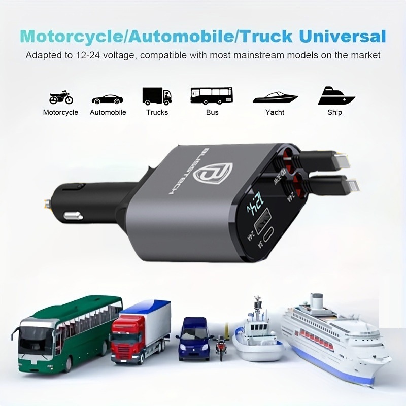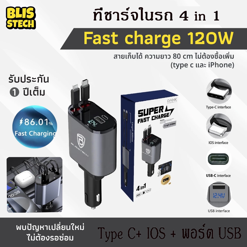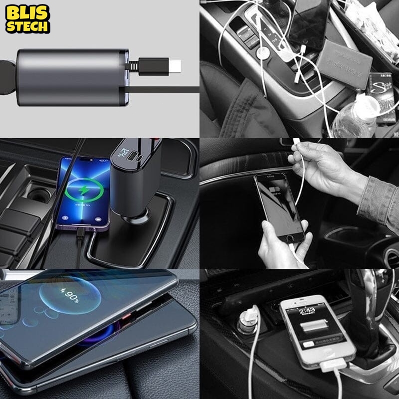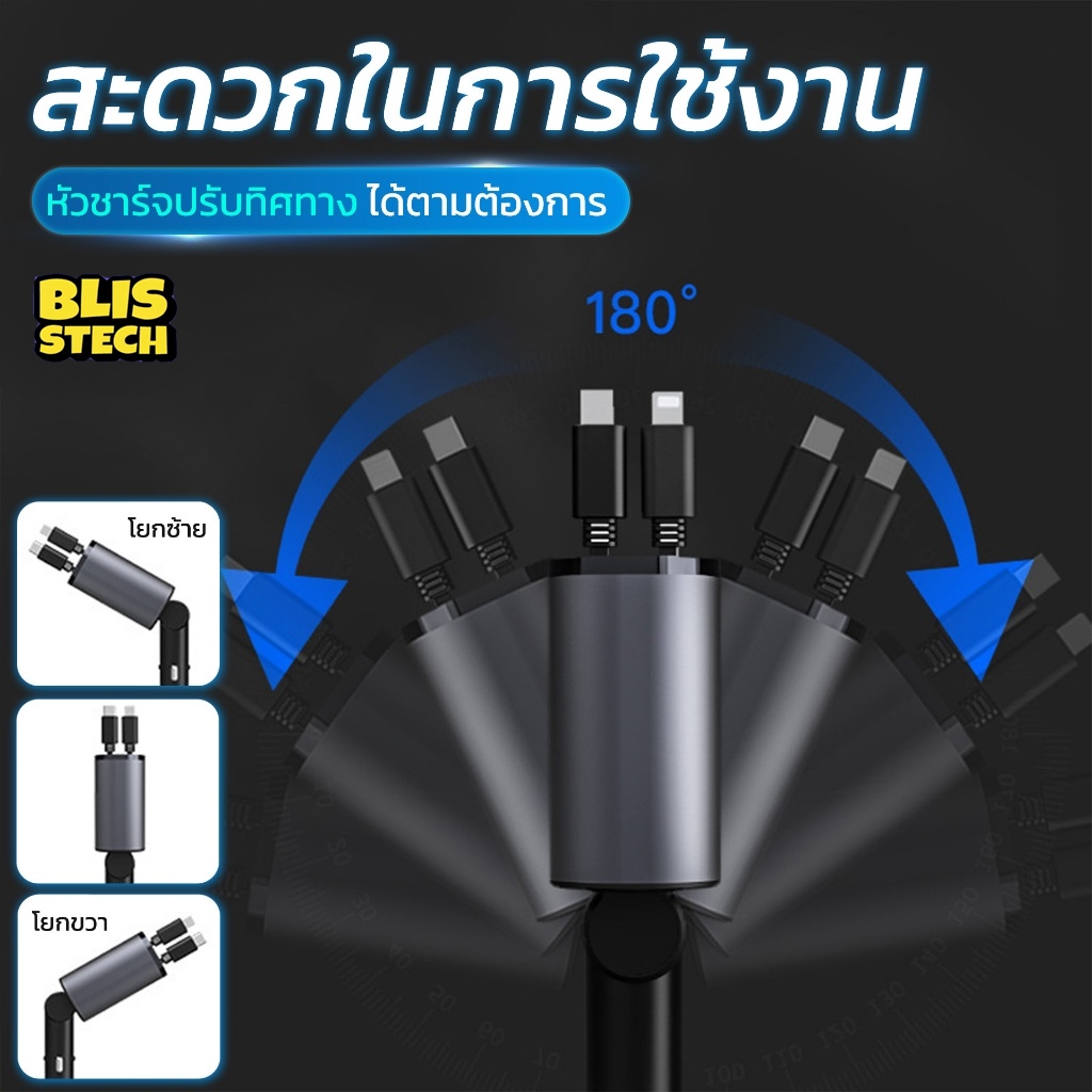 🚗 ที่ชาร์จในรถ หัวชาร์จในรถ สายชาร์จในรถยนต์ fast charging อะแดปเตอร์ชาร์จเร็ว สายยืดหดได้ Type-C USB Lightning สําหรับรถยนต์