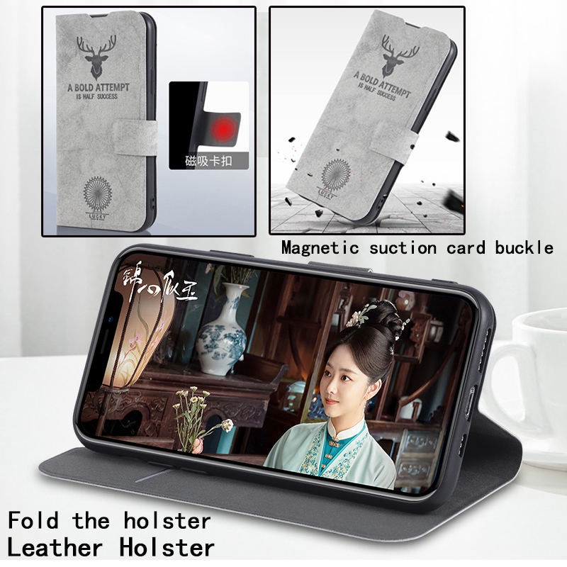 #Flip #Case #OPPO #Reno13 #5G #Reno #13 #13Pro #12Pro #8T #A3X #A3 #4G #A3Pro #A98 #A79 #A5 #Pro #Find #X8 #Magnetic #Buckle #Leather #Holster #With #Card #Slot #Soft #TPU #Cartoon #Elk #Phone #Cover #With #Lanyard