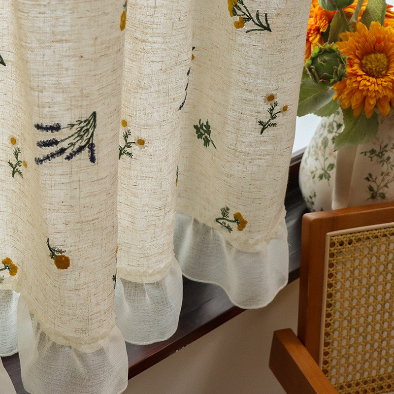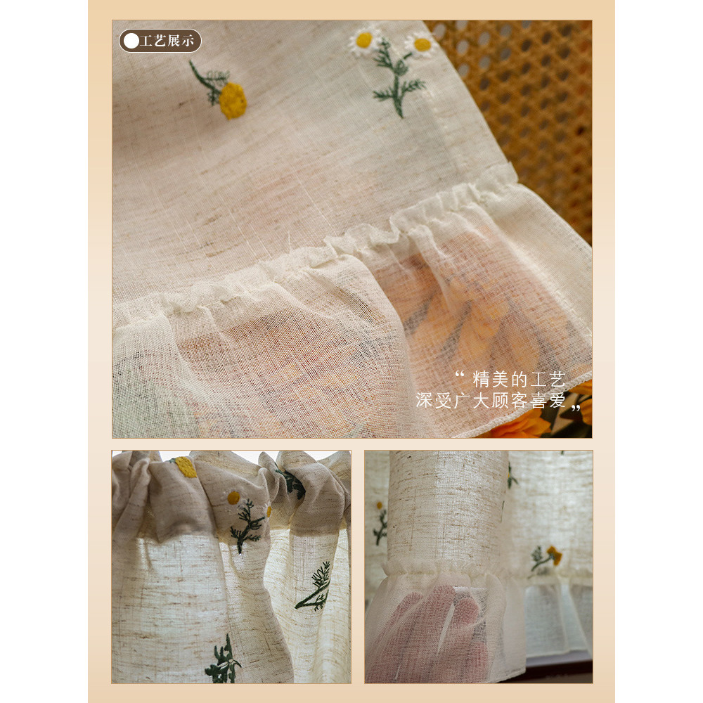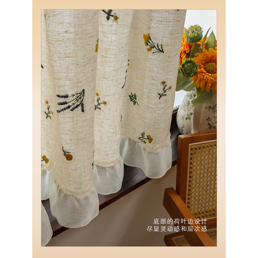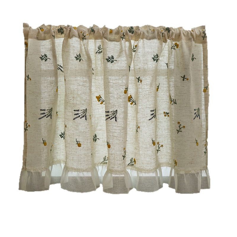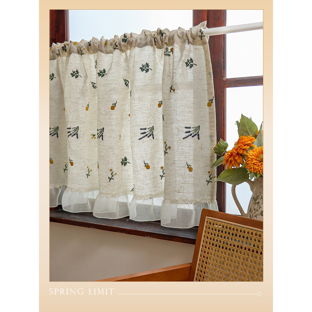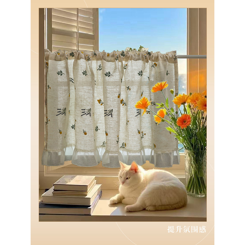 สไตล์ญี่ปุ่นครึ่งผ้าม่านผ้าลินินเย็บปักถักร้อยบล็อกผ้าม่านขนาดเล็กสดบล็อกน่าเกลียดผ้าม่านสไตล์อภิบาลผ้าม่านบรรยากาศกาแฟเคอร์