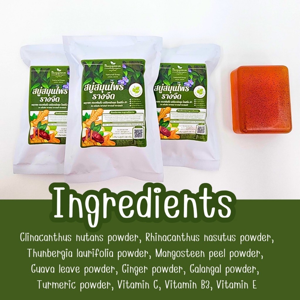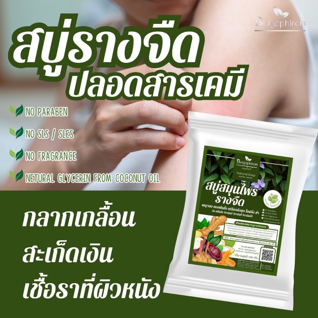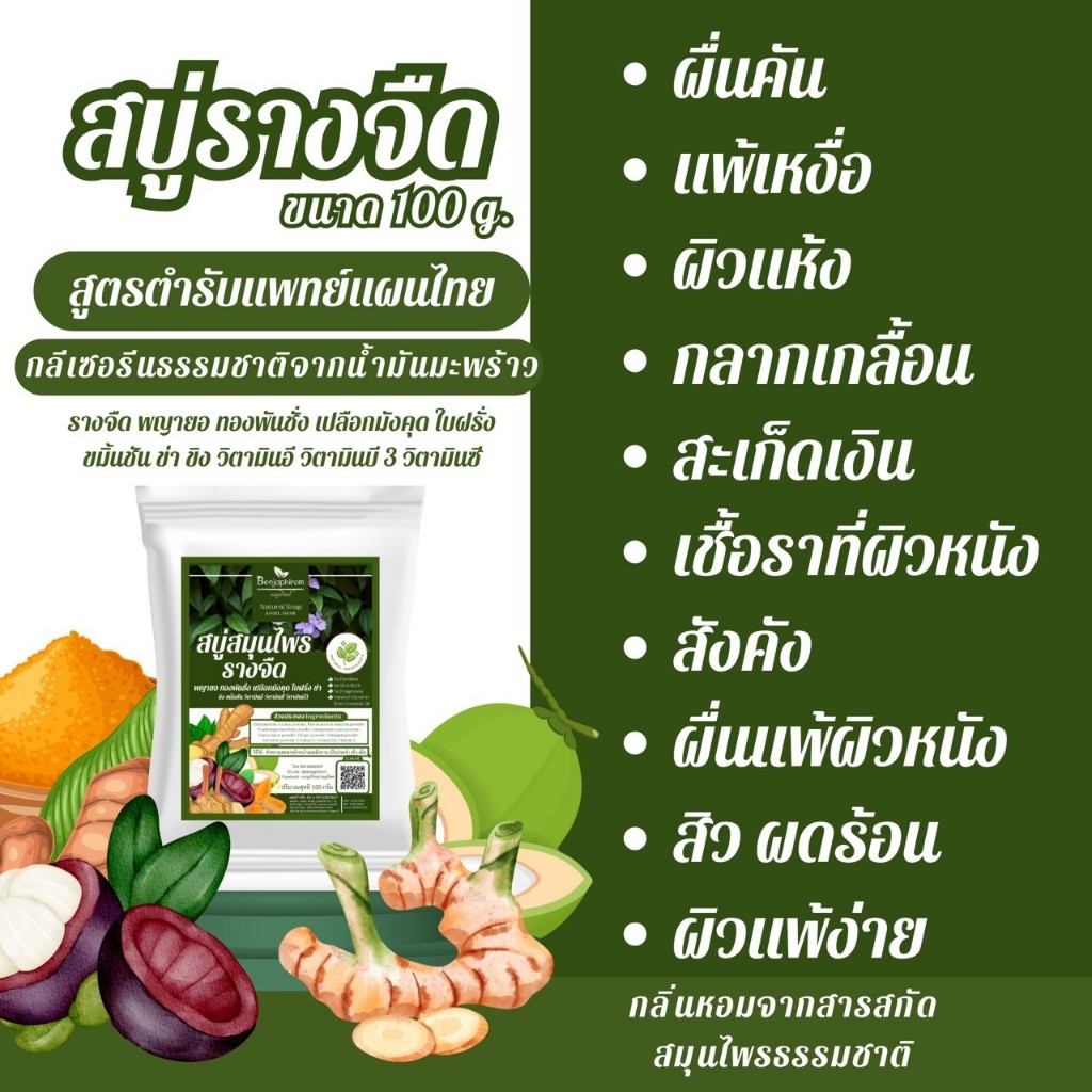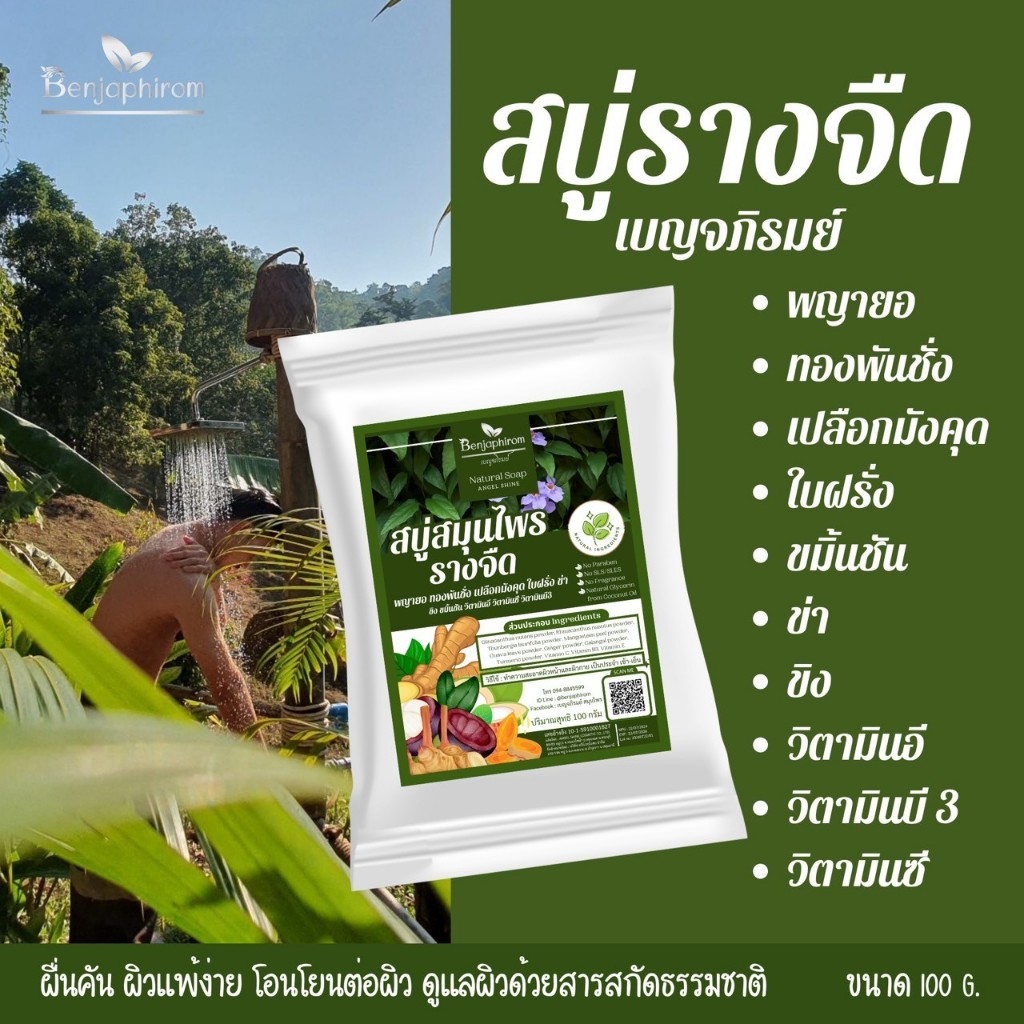 สบู่รางจืด พญายอ ทองพันชั่ง เปลือกมังคุด ขมิ้นชัน ขิง ข่า (100 กรัม) ฟื้นฟูผิว ปกป้องผิว ด้วยสมุนไพร 100% เบญจภิรมย์