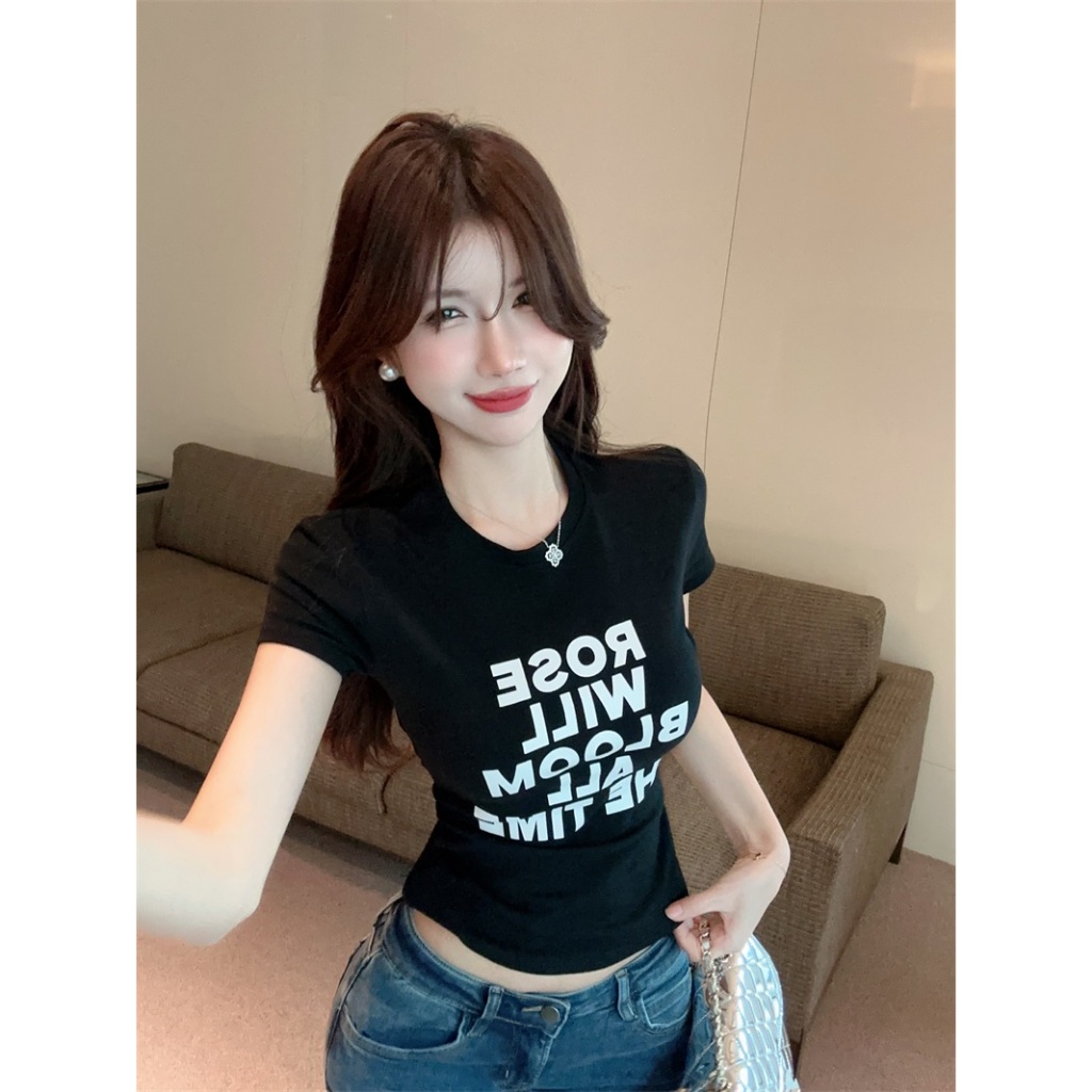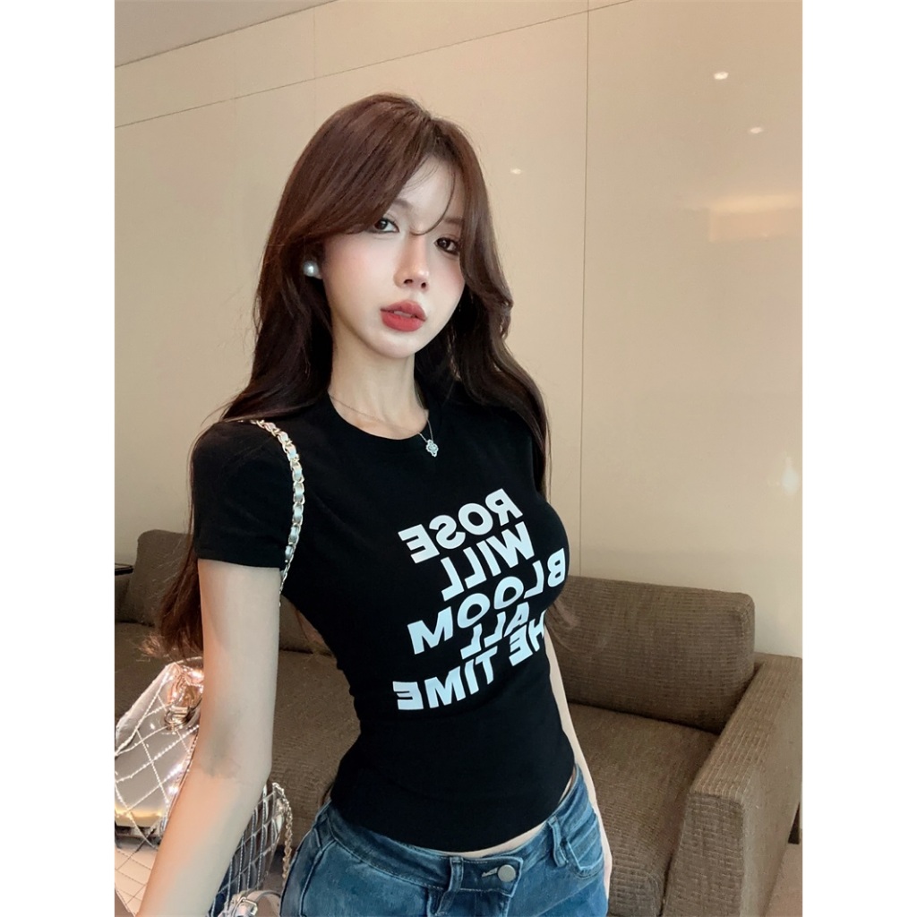 จัดส่งจากกรุงเทพฯ🌼เสื้อยืดฤดูร้อนสำหรับผู้หญิง แขนสั้น คอกลม เสื้อพิมพ์ลายตัวอักษร high street style เนื้อผ้าสบาย ใส่สบา