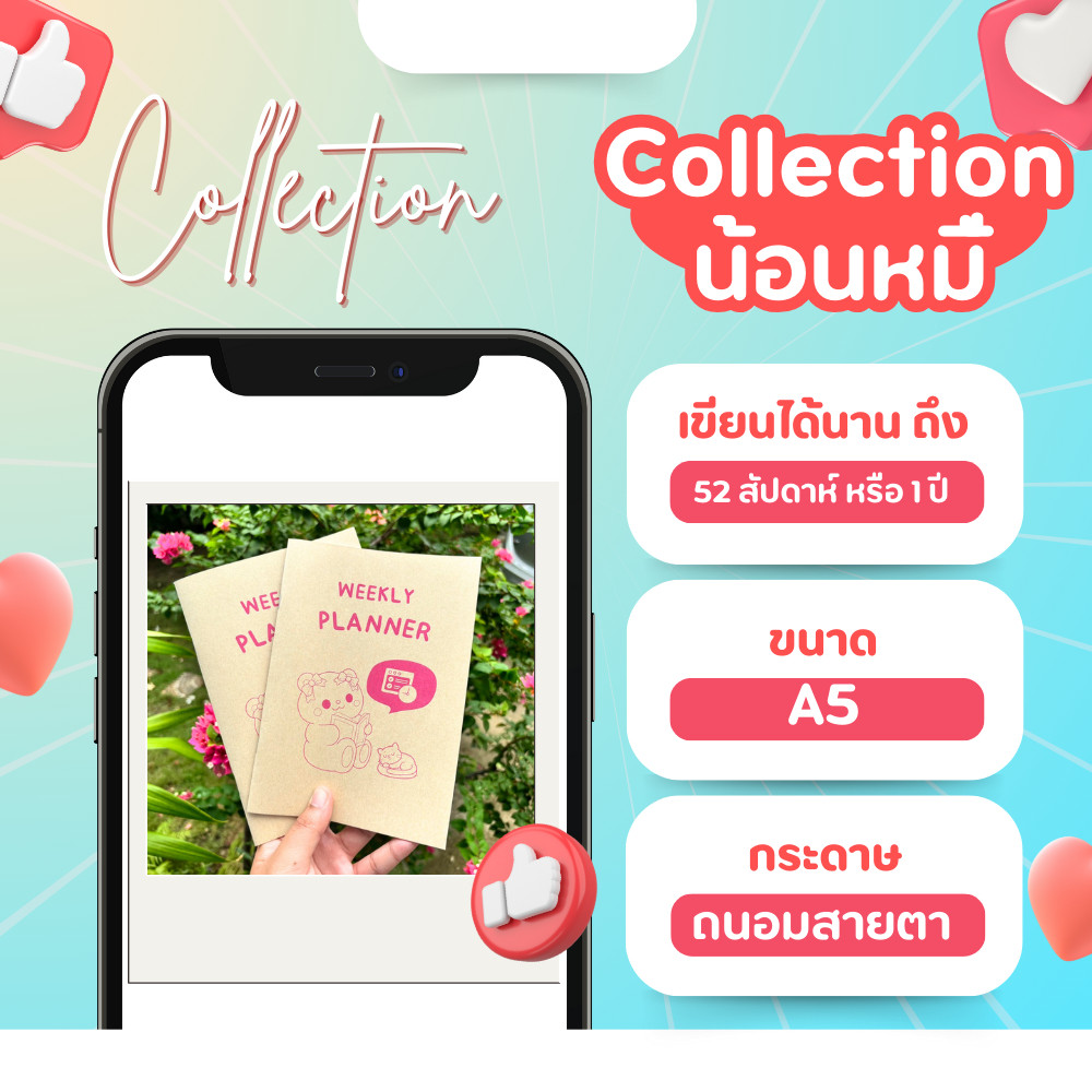 🧸 สมุดแพลนเนอร์รายสัปดาห์ คอลเลคชั่นน้องหมี ขนาด A5 🧸