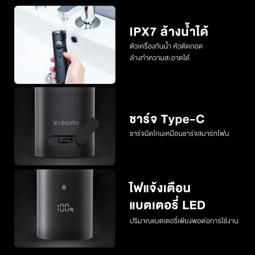 – กันน้ำระดับ IPX7 ล้างได้ทั้งเครื่อง และหัวใบมีดแบบถอดได้