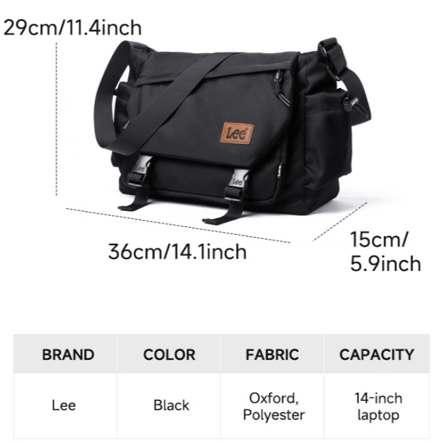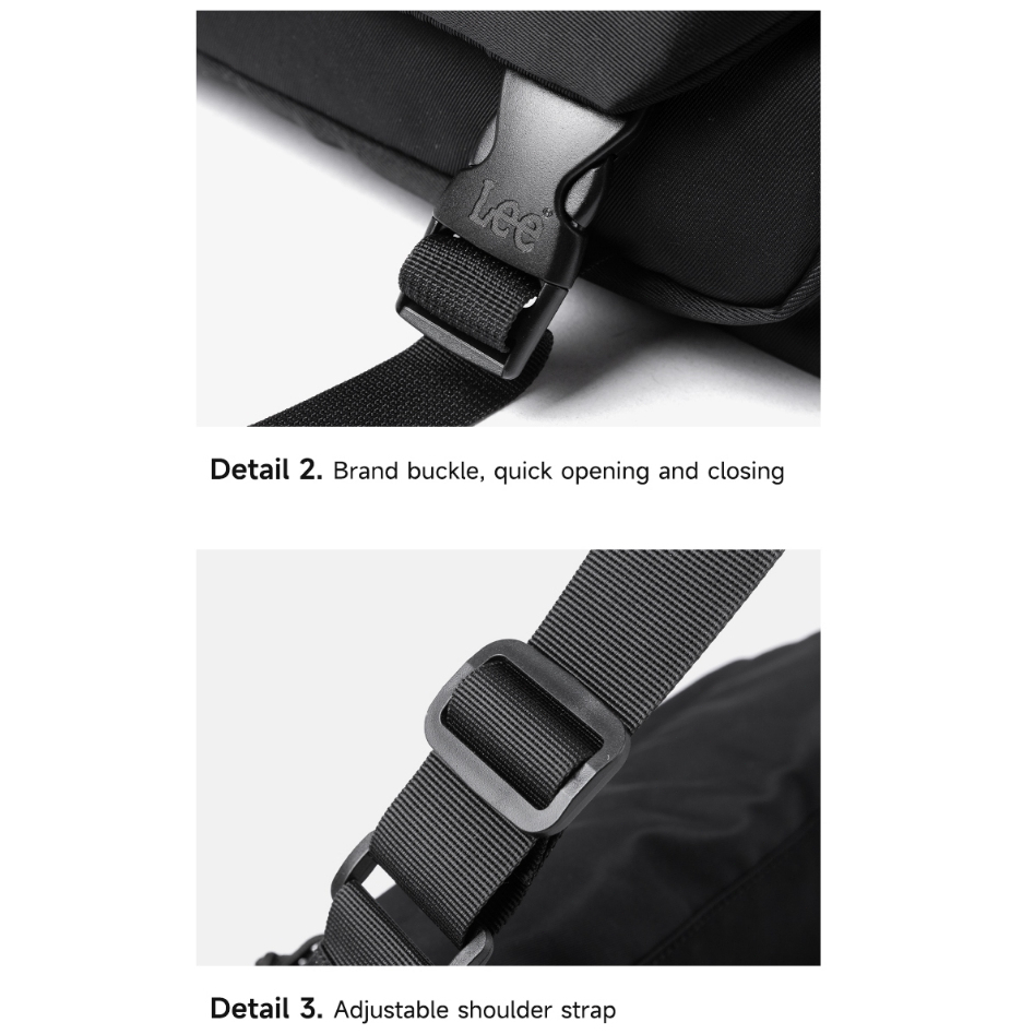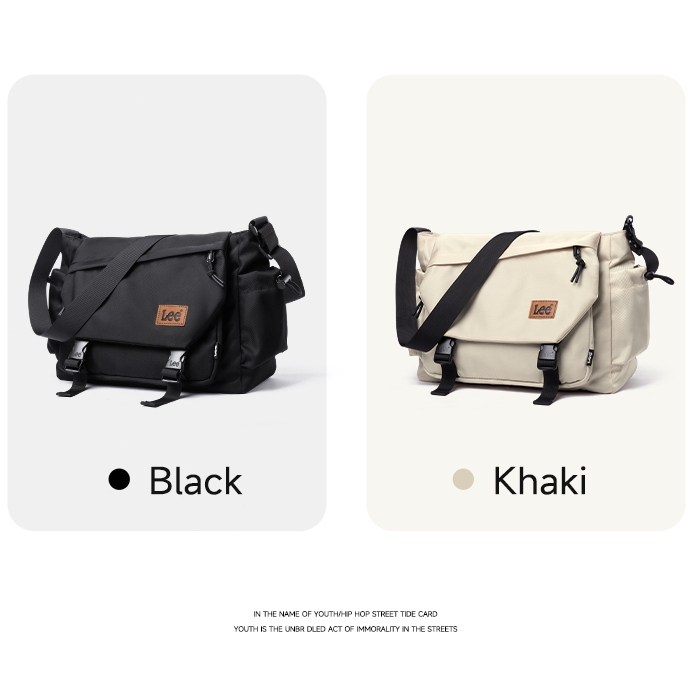 Lee กระเป๋าผู้หญิงกระเป๋า ผู้สื่อสาร 2025 สไตล์ใหม่ขนาดใหญ่-ความจุกระเป๋าสะพายผู้ชายสีดําน้ําหนักเบาพร็อพกระเป๋า ผู้สื่อสาร สบายๆ