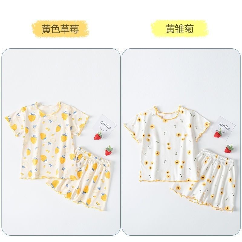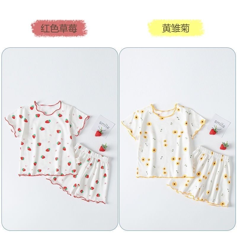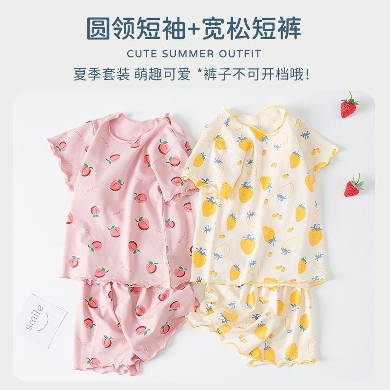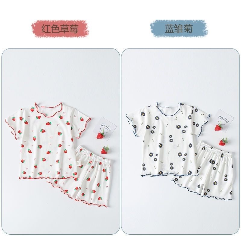 ชุดกางเกงห้าจุดแขนสั้น สำหรับเด็ก ฤดูร้อน จากผ้าฝ้าย พร้อมลายเส้นน่ารัก เหมาะสำหรับใส่เป็นชุดนอน