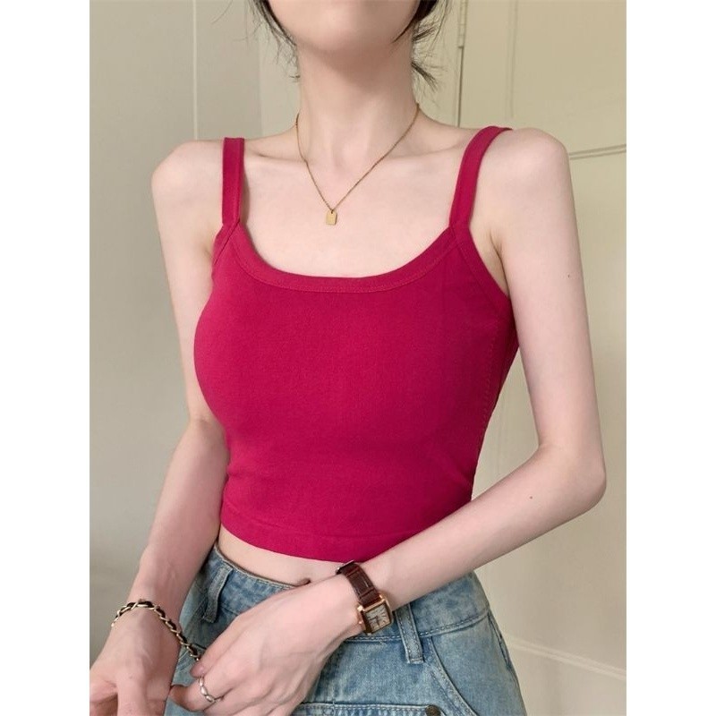 เสื้อกล้ามผู้หญิง เสื้อสายเดี่ยวเปิดหลัง ไหมพรม มีฟองน้ำสีพื้น