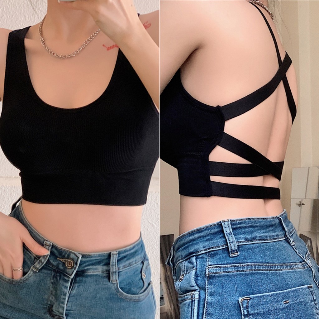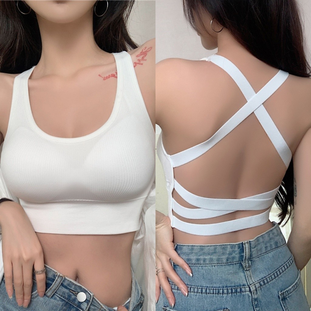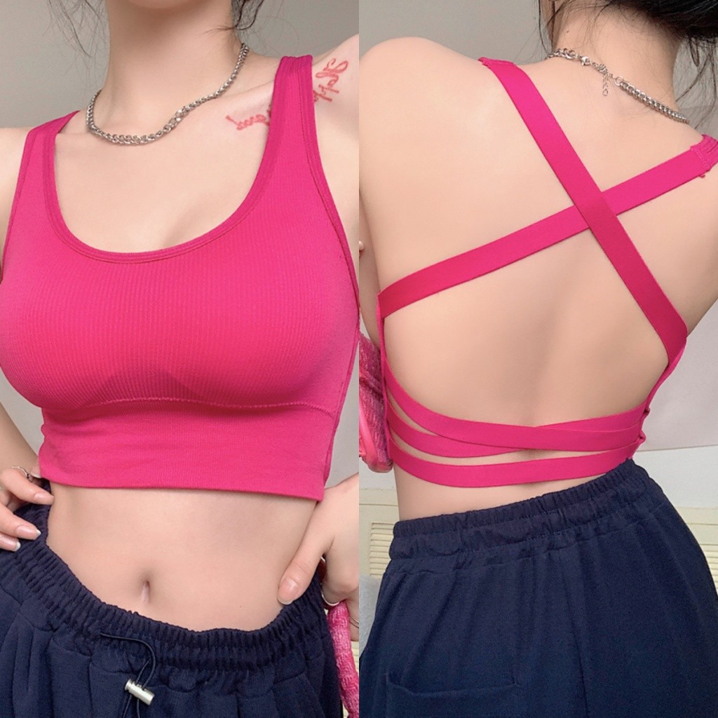 Glassy Sky💖พร้อมส่ง💖รุ่นใหม่มาแรง เสื้อสปอร์ตบรา เสื้อครอปสายเดี่ยวครึ่งตัว โชว์หลังสายไขว้สุดเซ็กซี่ เสื้อกล้าม(FY5741)