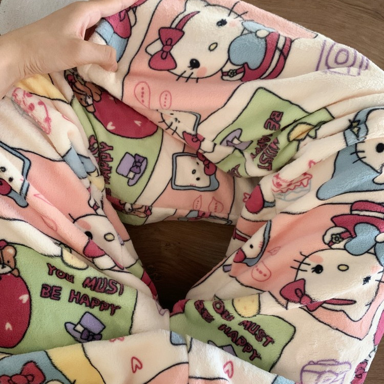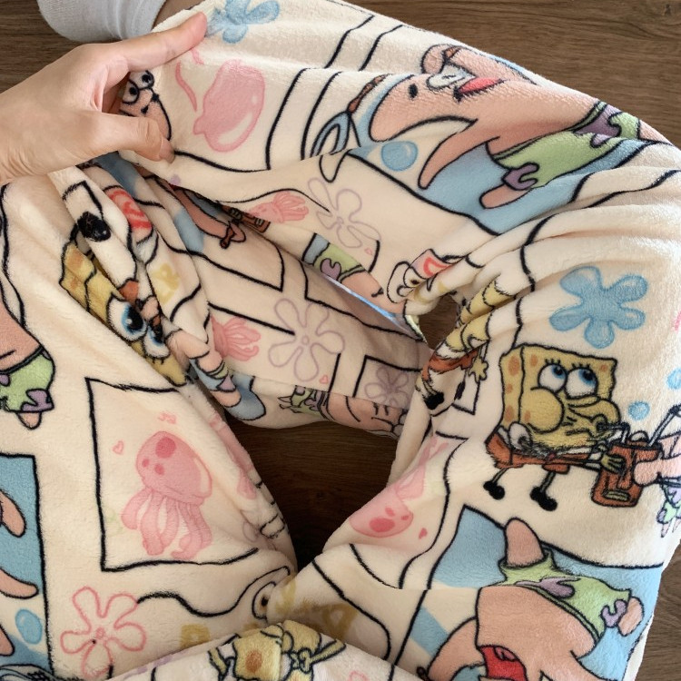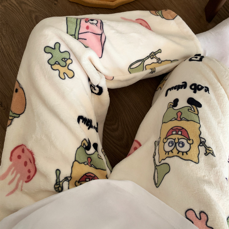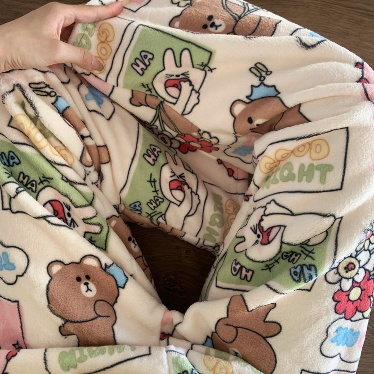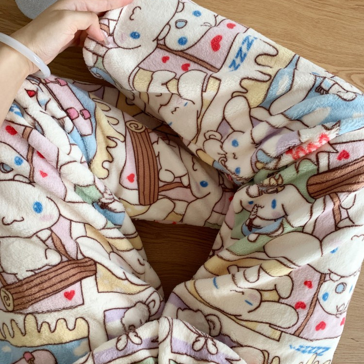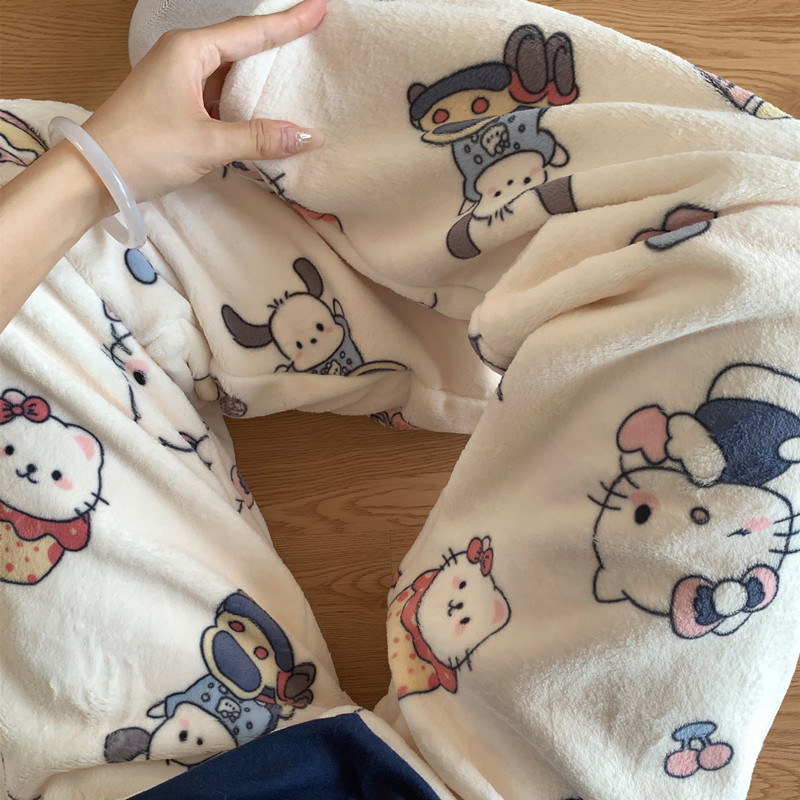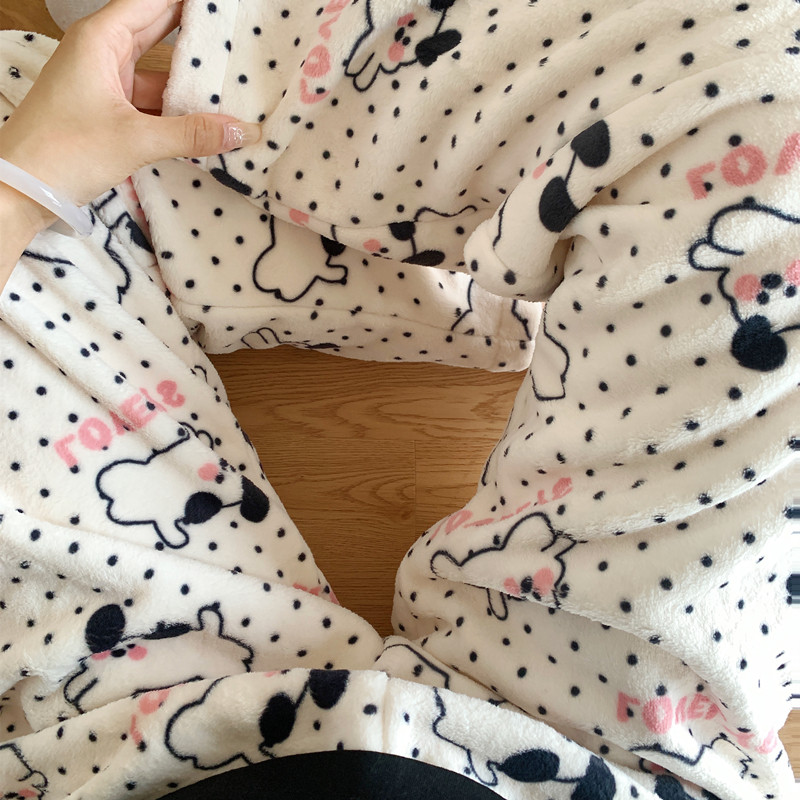 FDS กางเกงผ้าฟลีซหน้าแปลนการ์ตูนน่ารัก Snoopy กางเกงนอนขนแกะปะการังผู้หญิงฤดูใบไม้ร่วงและฤดูหนาวกางเกงใส่ในบ้าน