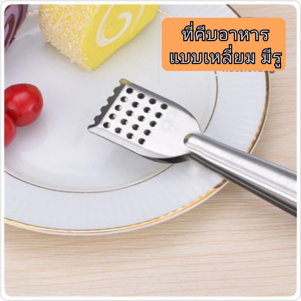 – ที่คีบอาหารสเตนเลส ปลายที่คีบเจาะรูมาอย่างดี
