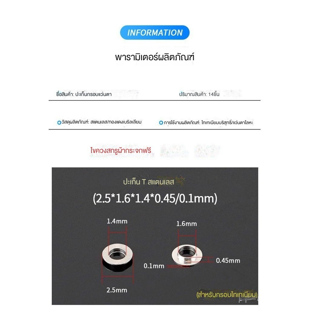 ![[เฉพาะอุปกรณ์เสริมไม่มีแว่นตา] ปะเก็นกรอบแว่นตา, ปะเก็นแบนสแตนเลส, ปะเก็นโลหะเบริลเลียมทองแดงชนิด T-นูน, การเชื่อมต่อขากระจก, อุปกรณ์บานพับ, การซ่อมแซม](https://bkkmarket.com/wp-content/plugins/shopee-woocommerce-sync-v5.0/assets/Button-Shopee.webp)