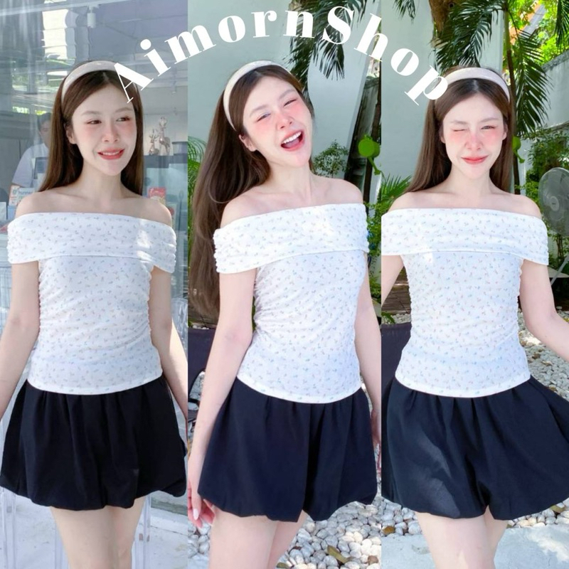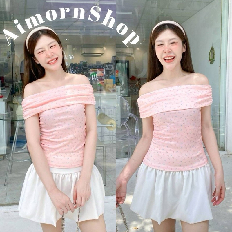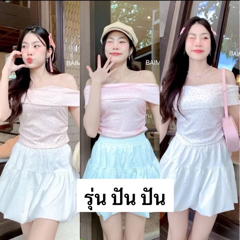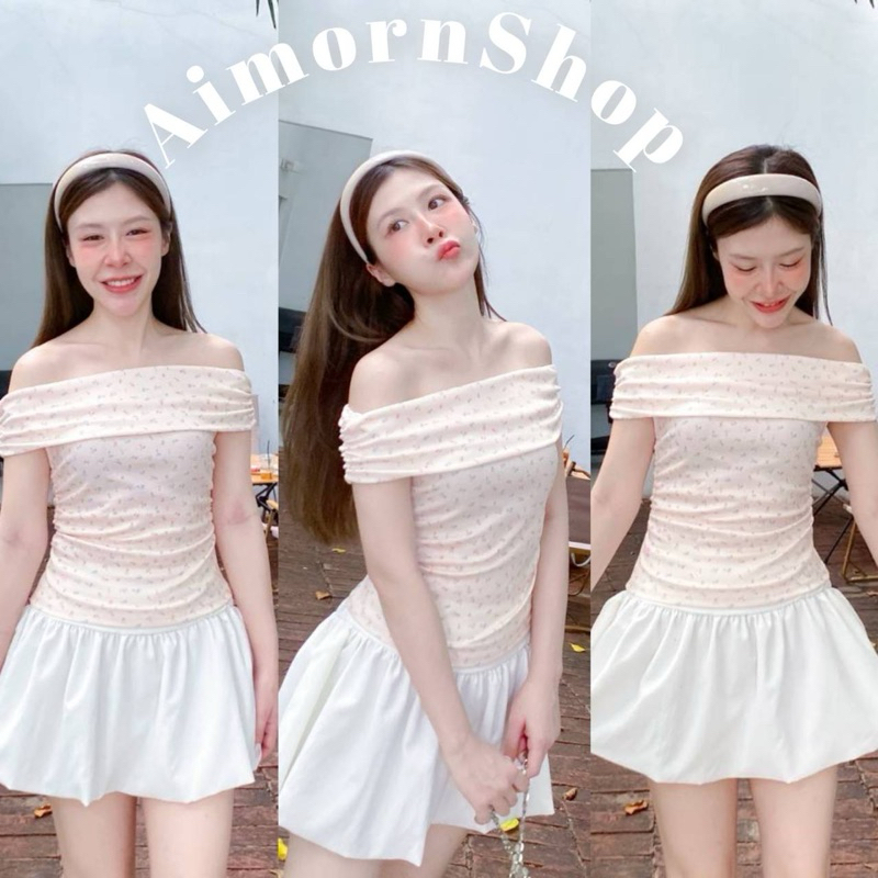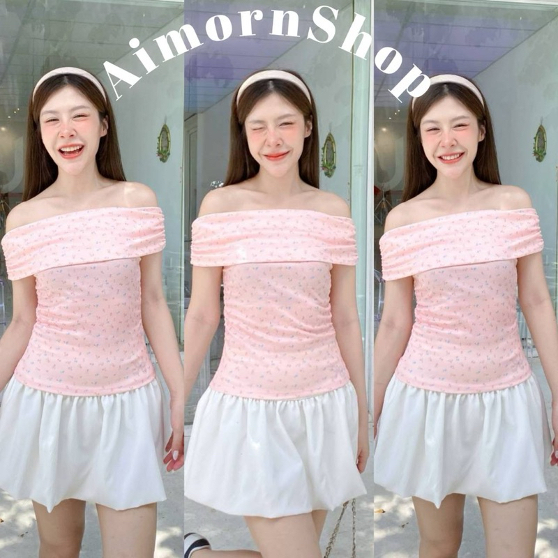 เสื้อปาดไหล่เย็บย่นช่วงเอว ใส่เข้ารูปดูแล้วหุ่นดีมากค้าา