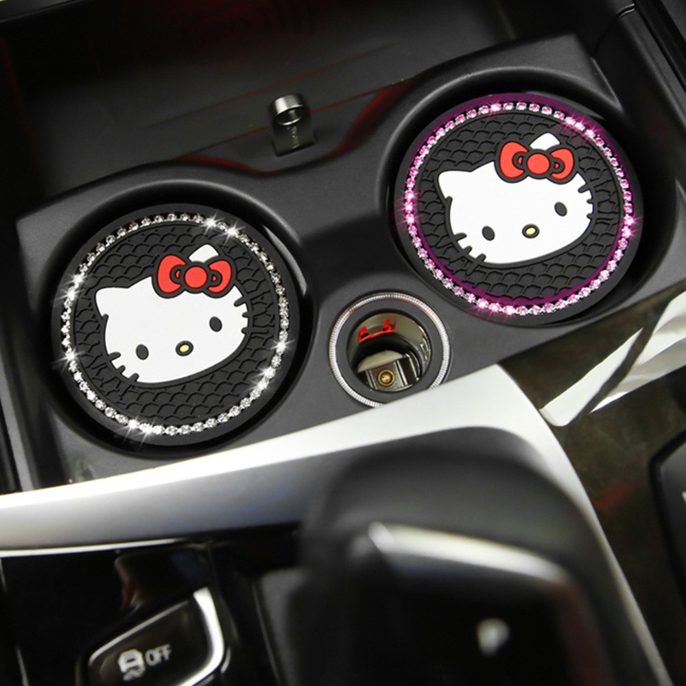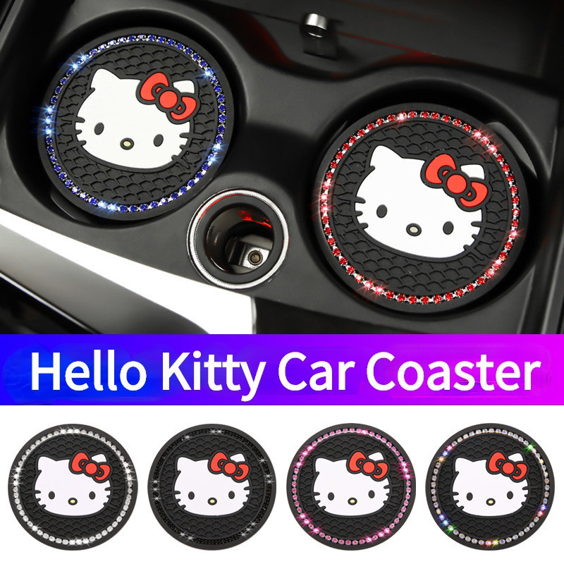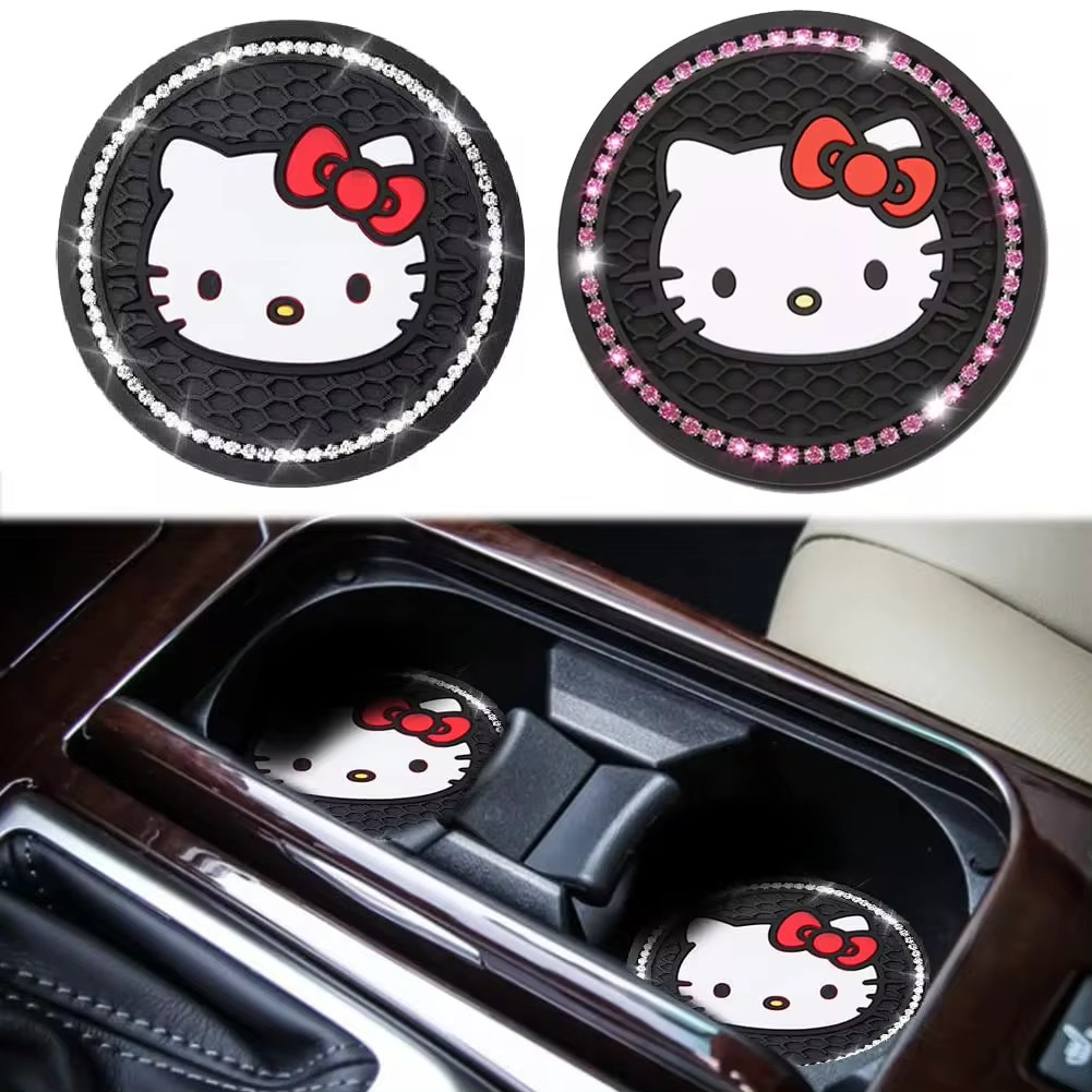 แผ่นรองแก้วรถยนต์ลายการ์ตูนอนิเมะ Sanrio Hello Kitty 2 ชิ้น แผ่นรองแก้วรถยนต์กันลื่นน่ารัก มีฉนวนกันความร้อน แผ่นรองแก้วกันลื่นลายการ์ตูนอนิเมะ ของขวัญสำหรับเด็กผู้หญิง TH