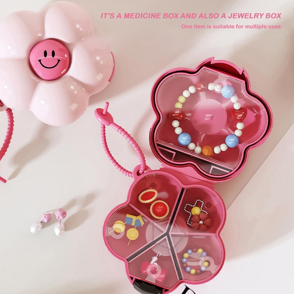 GIFTHUB กล่องจัดระเบียบ, ดอกไม้พร้อมแผ่นกั้นกล่องเก็บจี้, กล่องยามัลติฟังก์ชั่นพลาสติกแบบพกพา การท่องเที่ยว