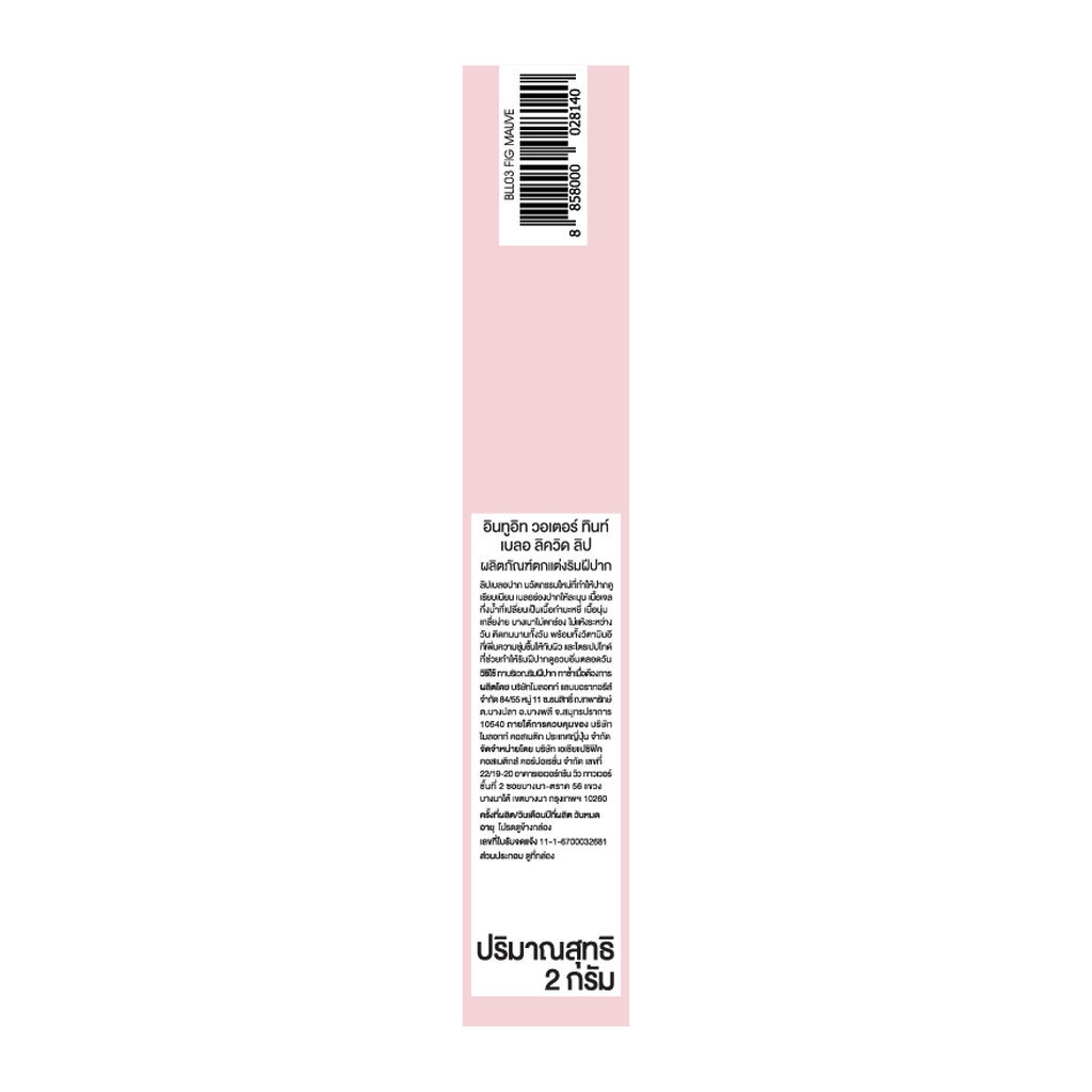 ลิปเบลอปาก นวัตกรรมใหม่ที่ทำให้ปากดูเรียบเนียน เบลอร่องปากให้ละมุน เนื้อเจลกึ่งน้ำที่เปลี่ยนเป็นเนื้อกำมะหยี่ เนื้อนุ่ม เกลี่ยง่าย บางเบาไม่ตกร่อง ไม่แห้งแตกระหว่างวัน มาพร้อมเฉดสีที่เข้ากับสีผิวคนไทยทั้งหมด 5 สี ติดทนนานทั้งวัน พร้อมทั้