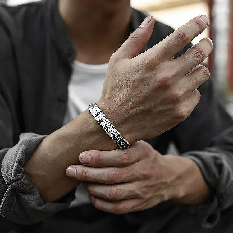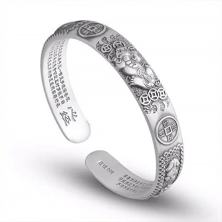 ไทยเงินจูนนำ Pixiu ทองแดงเหรียญผู้ชายสร้อยข้อมือครอบงำผู้ชายบุคลิกภาพหัวใจพิเศษแหวนมือของขวัญวันเกิดเครื่องประดับ