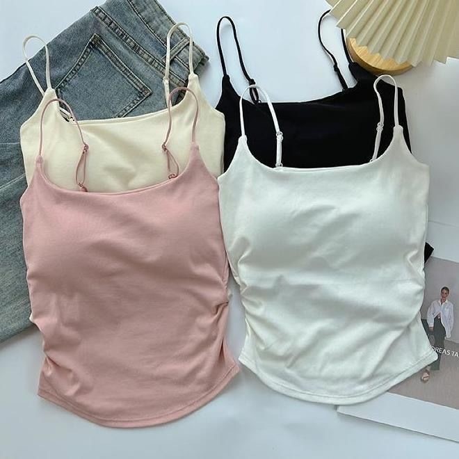สายรัดเอวเสื้อกั๊ก สไตล์ใหม่ที่มั่นคงพร้อมเสื้อชั้นใน ดีไซน์พลีท เสื้อผ้าแฟชั่นสำหรับผู้หญิง