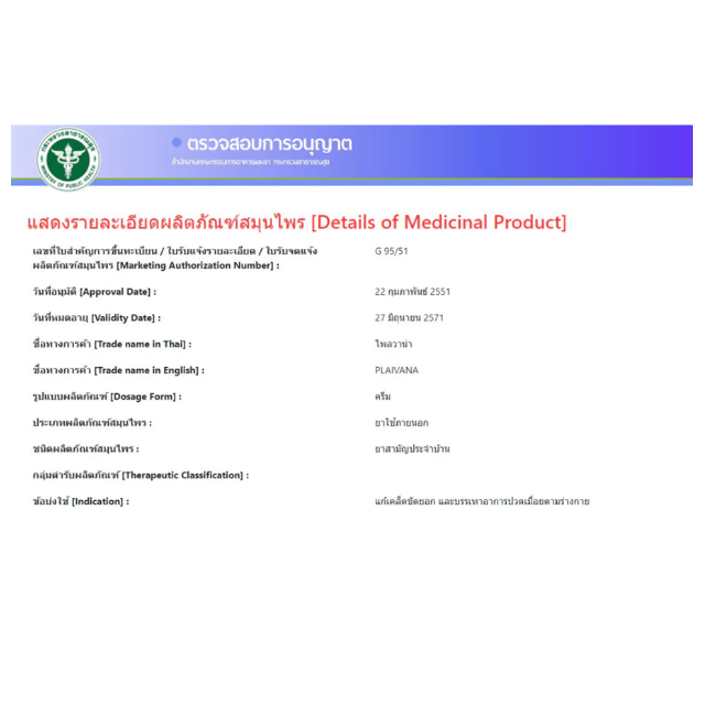 Plaivana Cream ไพลวาน่าครีม น้ำมันไพล 14%