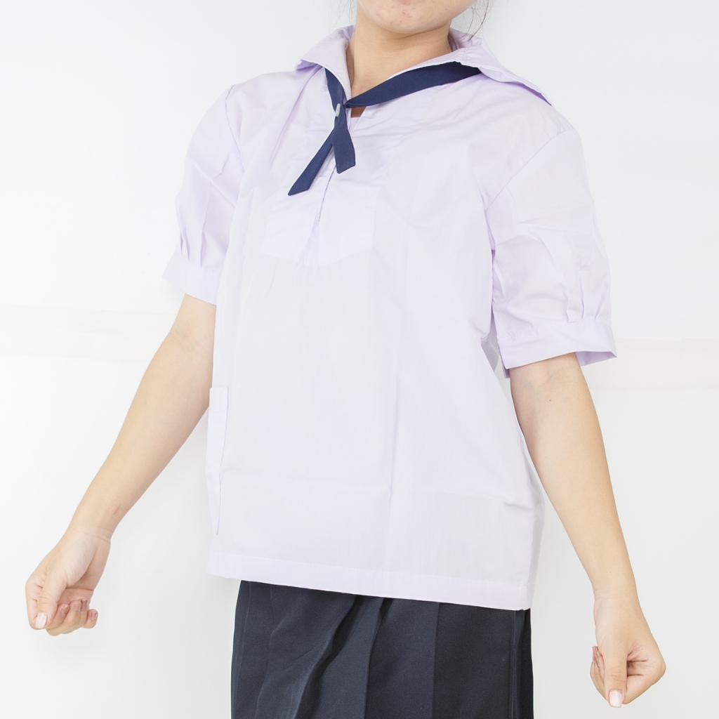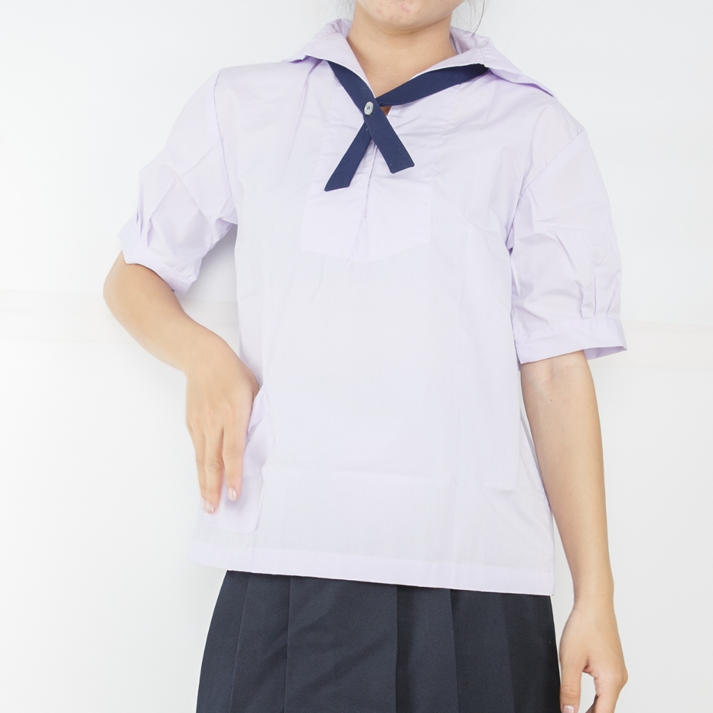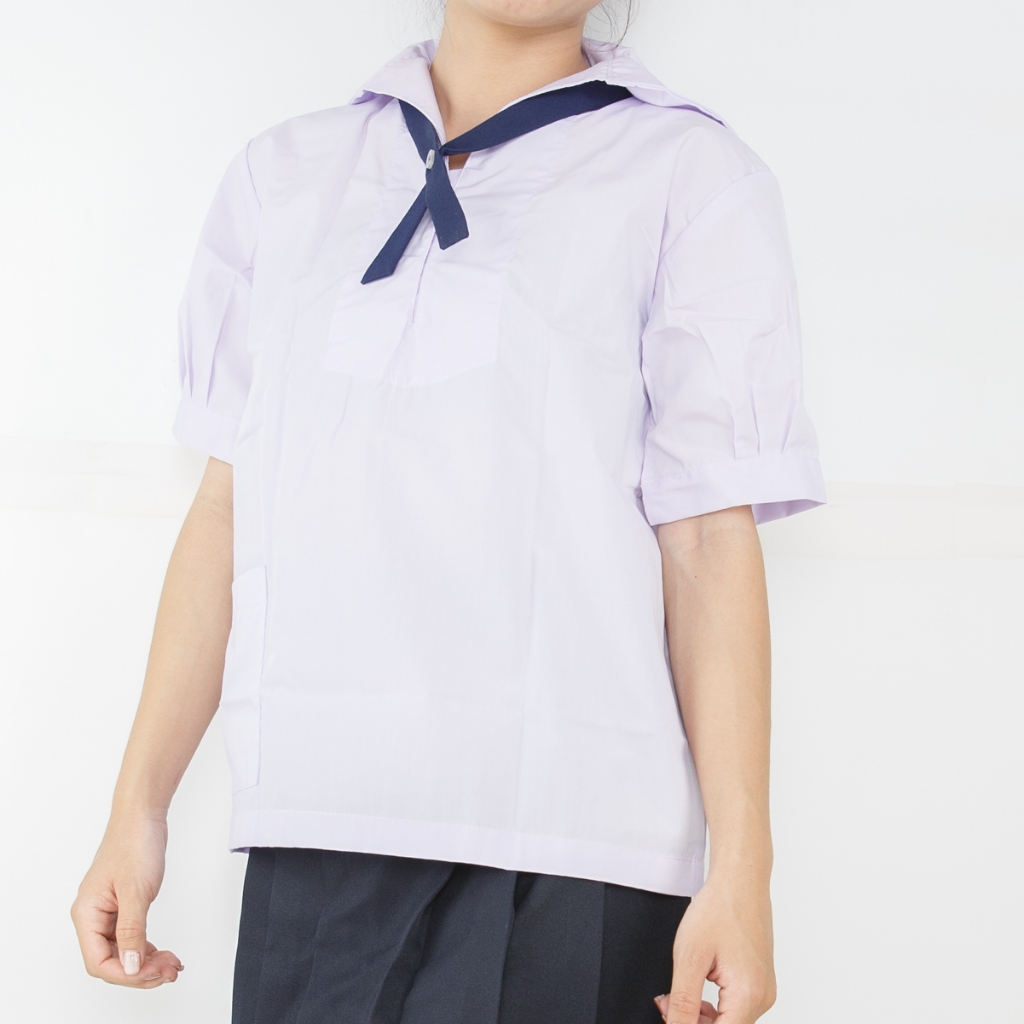 เสื้อนักเรียนคอทหารเรือ ตราชัยยะ เหมาะสำหรับนักเรียนหญิงสวมใส่คู่กับกระโปรงนักเรียน