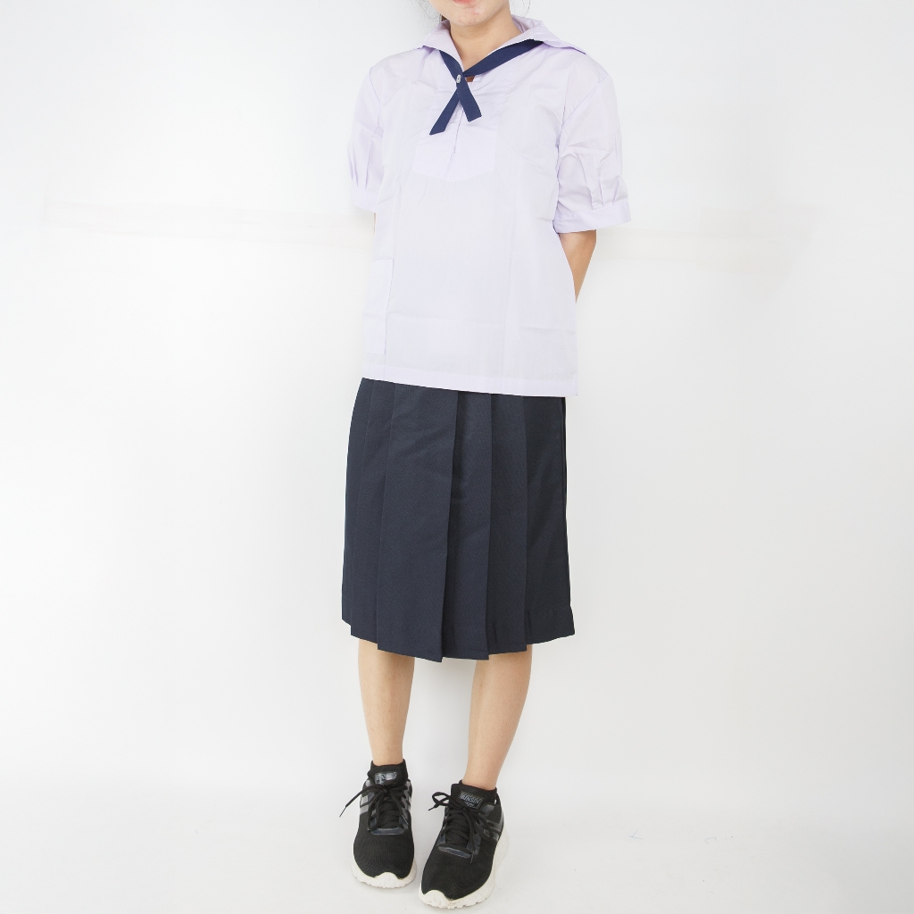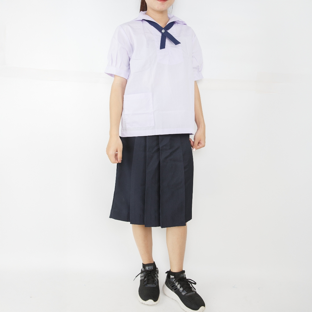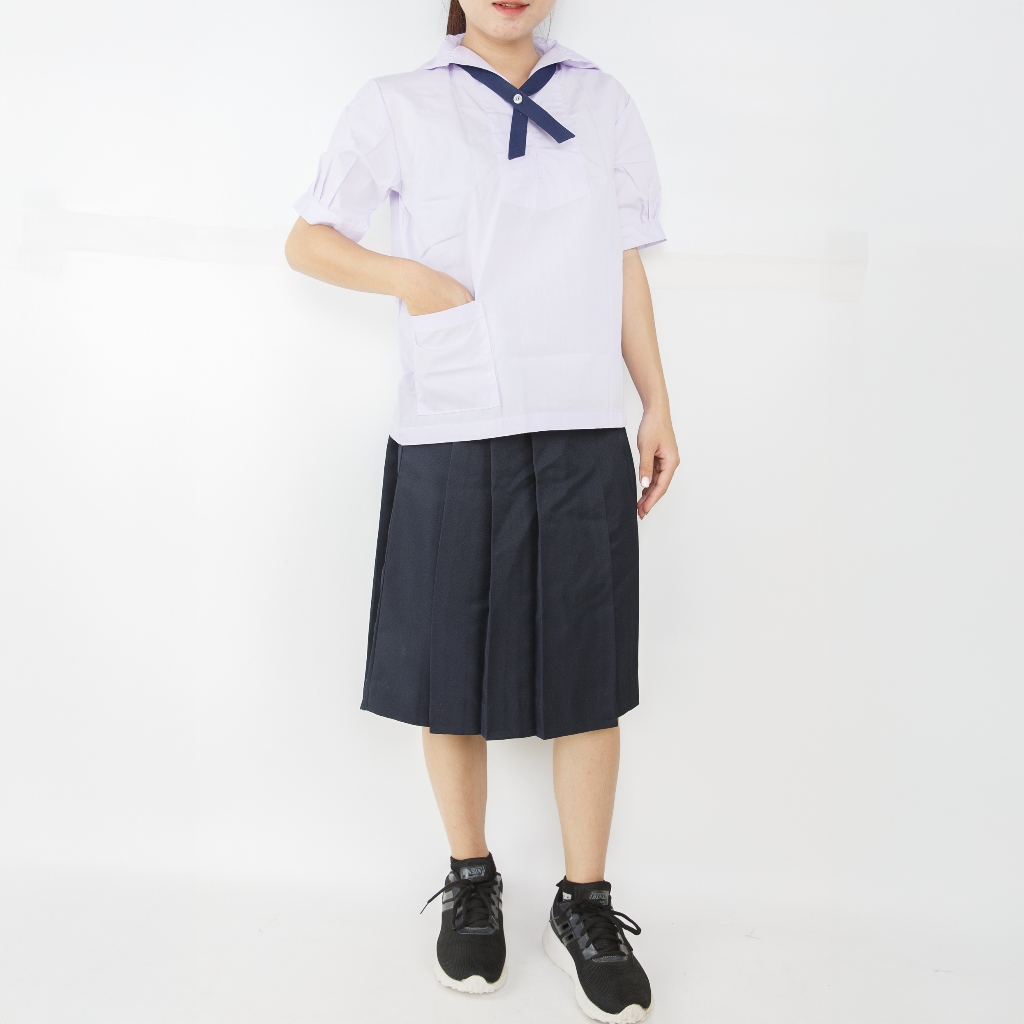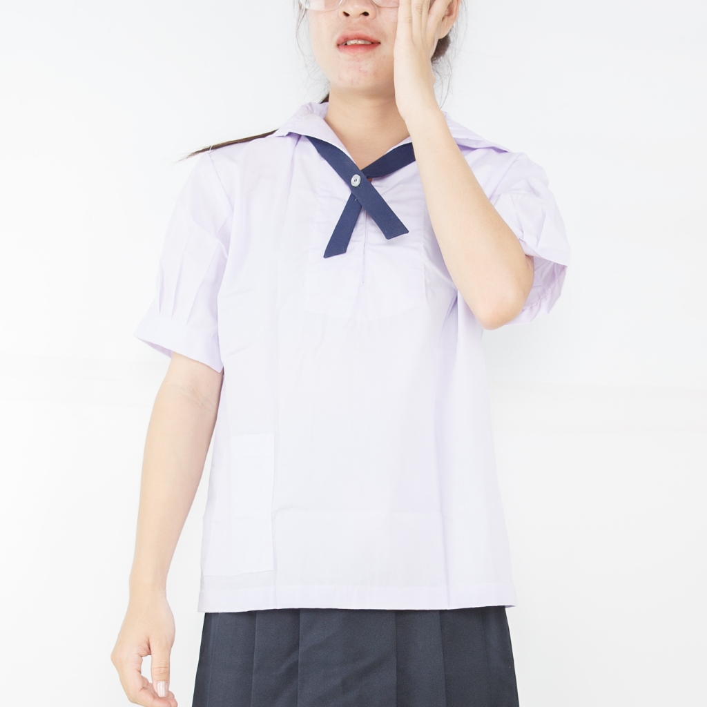 เสื้อนักเรียนคอทหารเรือ ตราชัยยะ เหมาะสำหรับนักเรียนหญิงสวมใส่คู่กับกระโปรงนักเรียน