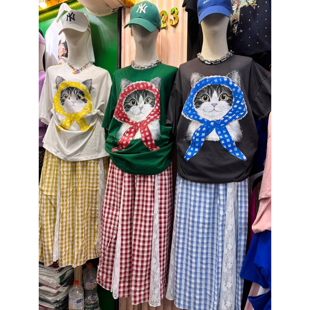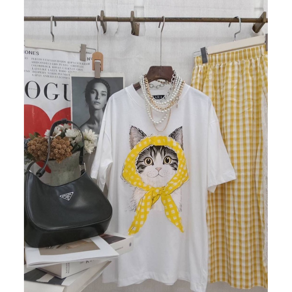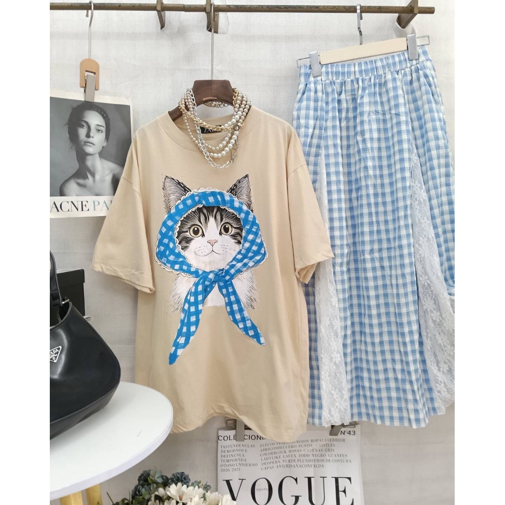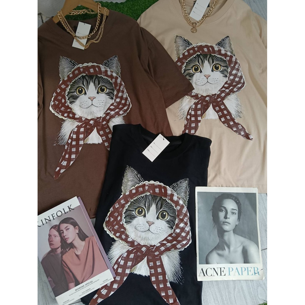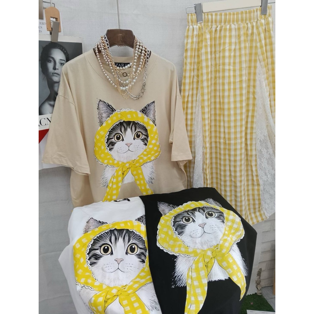 หยิบใส่ตะกร้าSIS.ON | พร้อมส่ง Oversize เสื้อยืดโอเวอร์ไซส์ No.23 (แมวลายสก็อต)