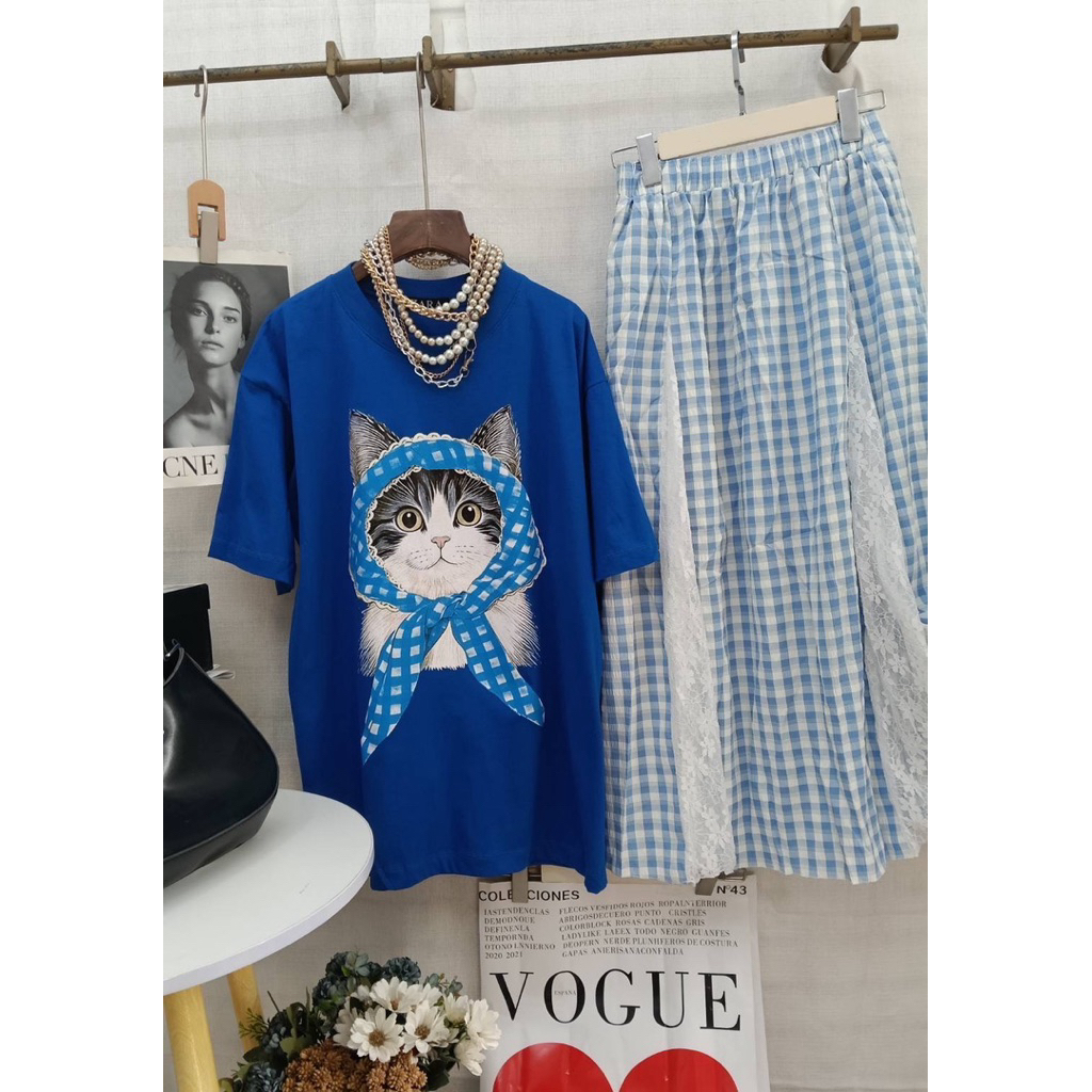 SIS.ON | พร้อมส่ง Oversize เสื้อยืดโอเวอร์ไซส์ No.23 (แมวลายสก็อต)