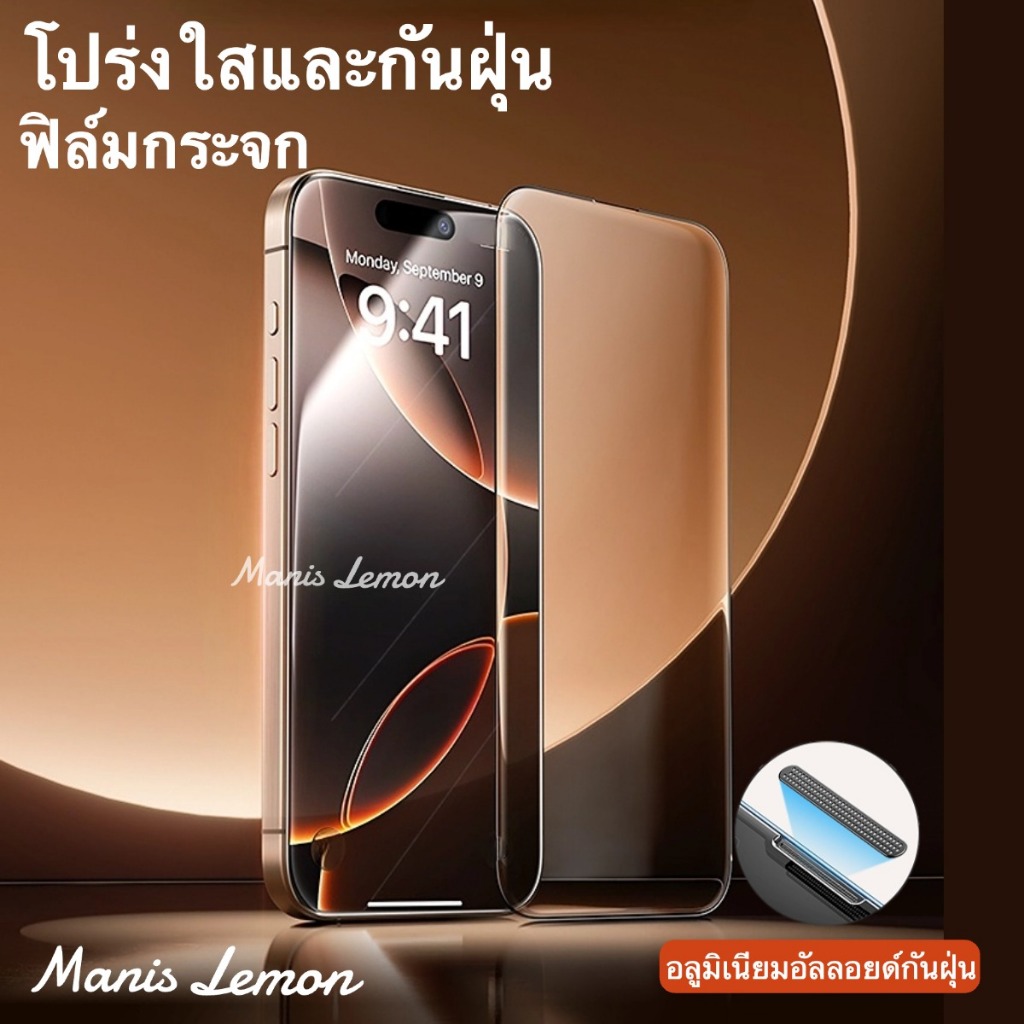 Manis Lemon AR กระจกนิรภัย กระจกเต็มจอ for iPhone 17 16 15 14 13 12 11 Pro Max Plus Air Xr ฟิล์มกระจก ไม่มีขอบสี กับแผ่นกรองฝุ่น สำหรับ ไอโฟน