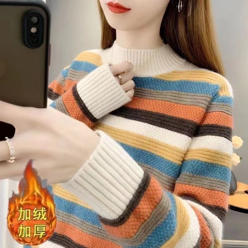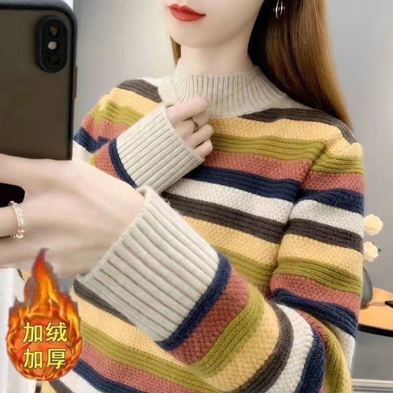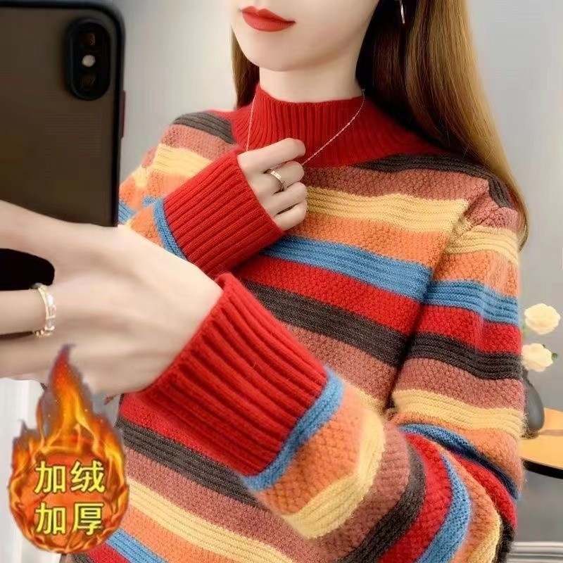 หยิบใส่ตะกร้าครึ่งคอเต่าลายเสื้อกันหนาวผู้หญิง 2025 ฤดูใบไม้ร่วงฤดูหนาวสไตล์ใหม่เกาหลีรุ่นหลวมถักเสื้อ จุดต่ําสุด ด้านนอก เรา