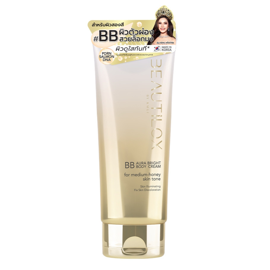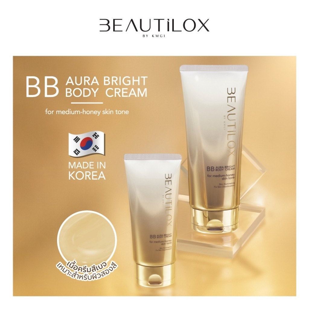บีบีและซีซีครีมทาผิวกาย BEAUTILOX Aura Bright BB White Up CC Body Cream ครีมบำรุงผิวที่มาพร้อมคุณสมบัติในการปรับสีผิวให้แลดูกระจ่างใสและเรียบเนียนในทันทีที่ทา เนื้อครีมซึมซาบเร